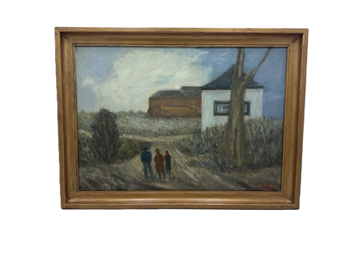Peinture à l'huile sur toile réalisée par War VAN OVERSTRAETEN (1891-1981), 'Les promeneurs'. Dimensions : 50 x 70 et 57 x 78 cm