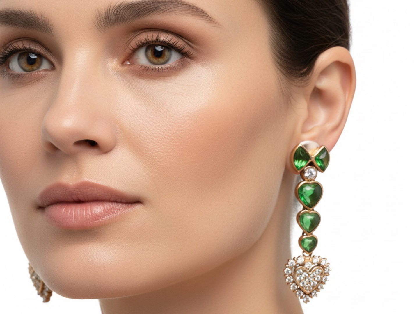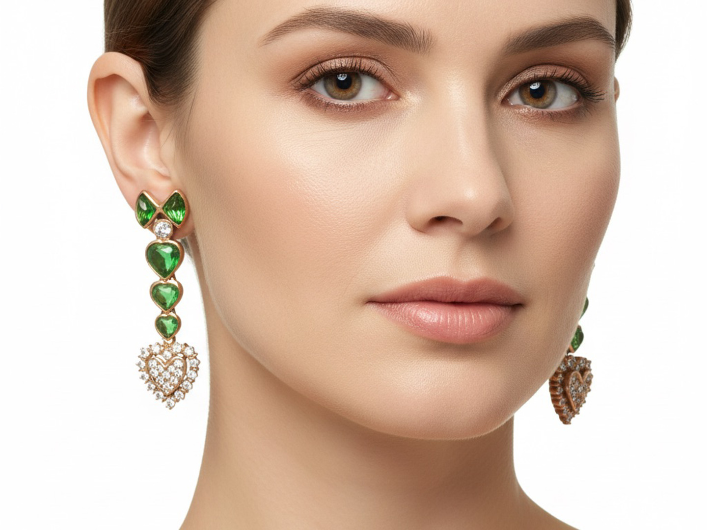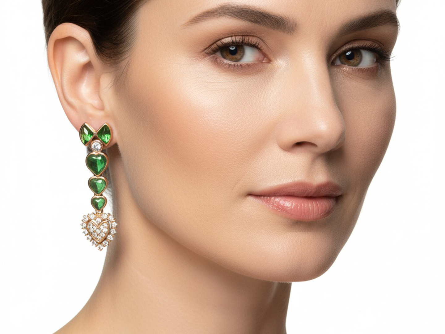 Boucles d’oreilles exclusives serties de 10 pierres de péridot vived green et de 50 brillants +- 1.20ct.