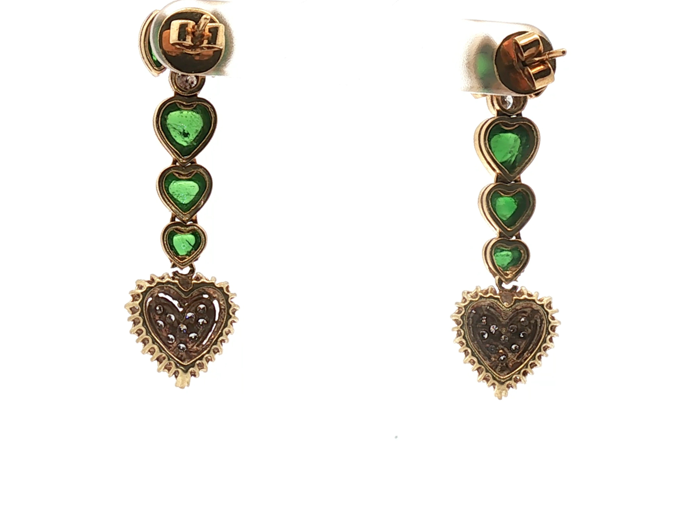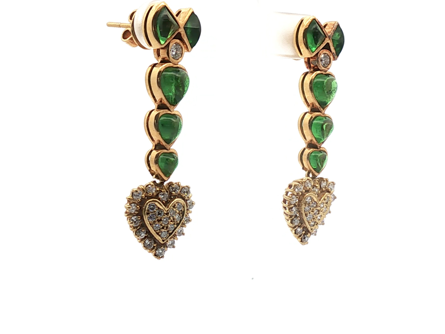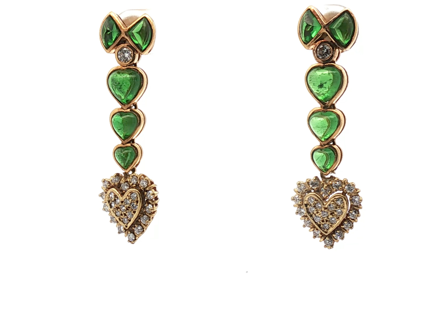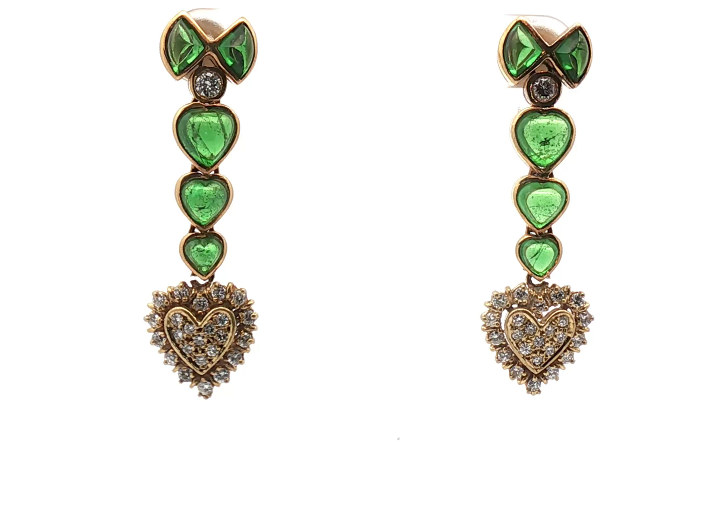 Boucles d’oreilles exclusives serties de 10 pierres de péridot vived green et de 50 brillants +- 1.20ct. couleur : F-G et pureté : VS serti en or jaune 18cts. (poinçon 750) longueur : +- 40 mm.
