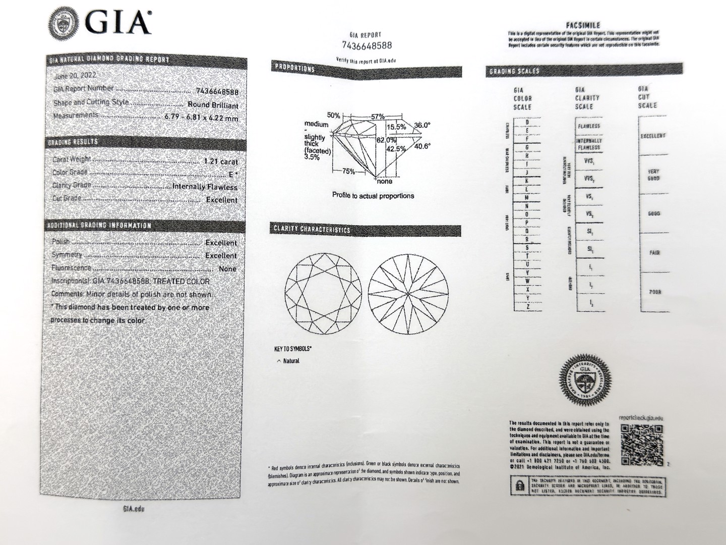 Solitaire de qualité supérieure taille brillant de 1,21 ct avec certificat GIA et inscription laser, couleur : E et pureté : IF (Internally Flawless) + 14 petits brillants : 0,52 ct, couleur : D et pureté : VVS, montés en or blanc 18 ct (poinçonné 750)