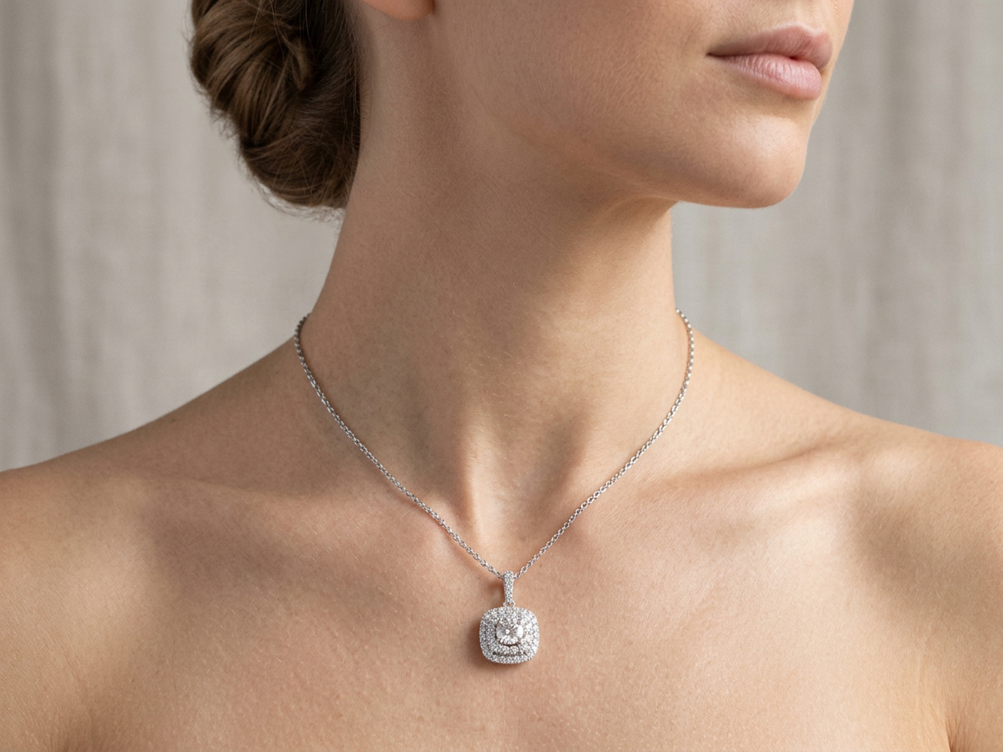 Pendentif de collier de qualité orné d'un brillant de 0,70 carat entouré de 42 petits brillants
