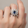 Bague ornée d'un beau saphir bleu Londres, entourée de 20 diamants : +-1,00 CT