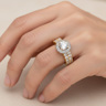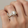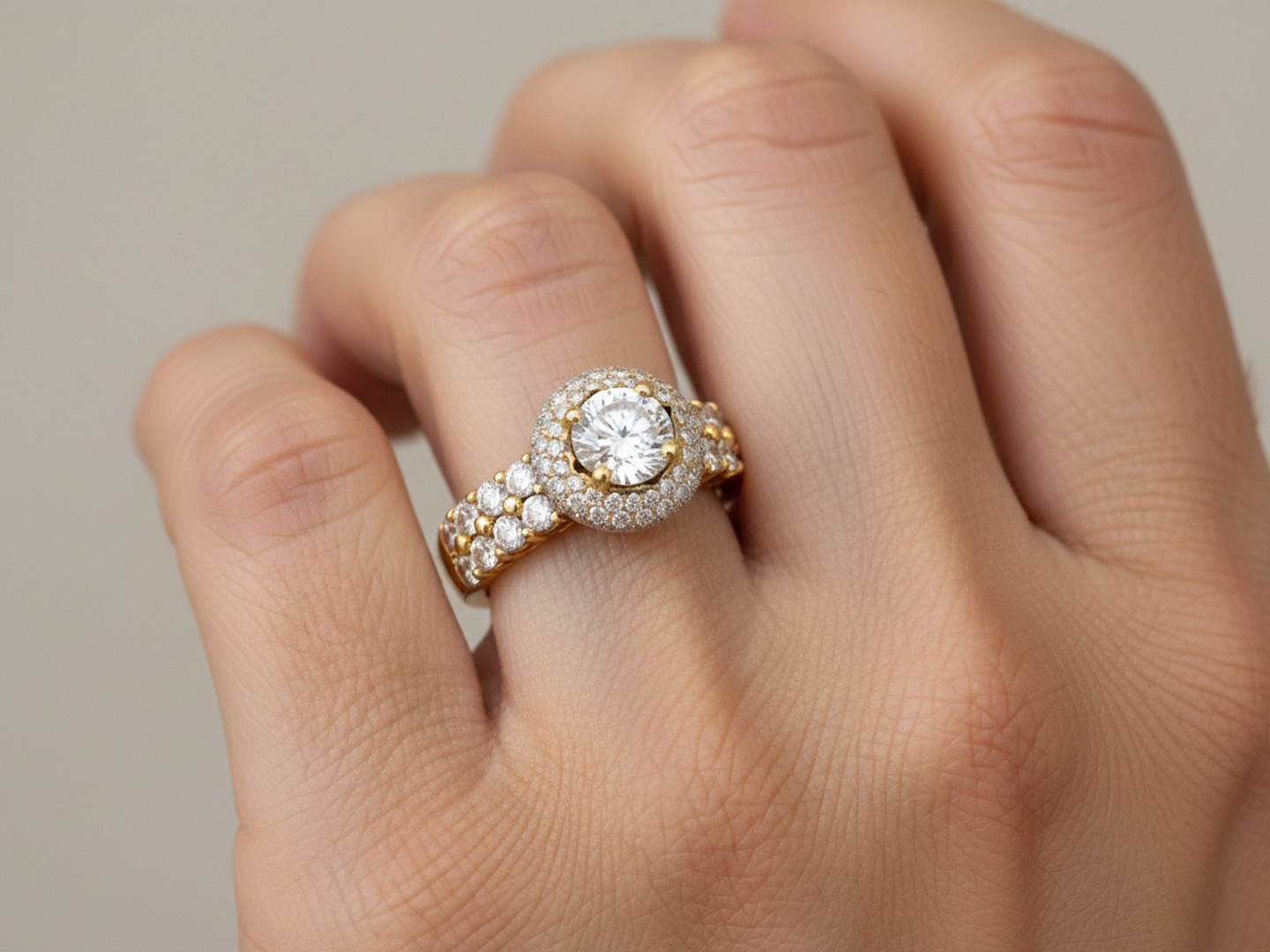 Bague avec 1 brillant de +-1,05CT, couleur : I et pureté : P1, entourée de 88 brillants : +-1,40CT