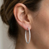 Une paire de boucles d'oreilles créoles ornées de 78 diamants : +-3,20 CT, couleur : F-G et pureté : VS. Montées en or blanc 18 carats (marqué 750). Diamètre de la boucle d'oreille : 38 mm.