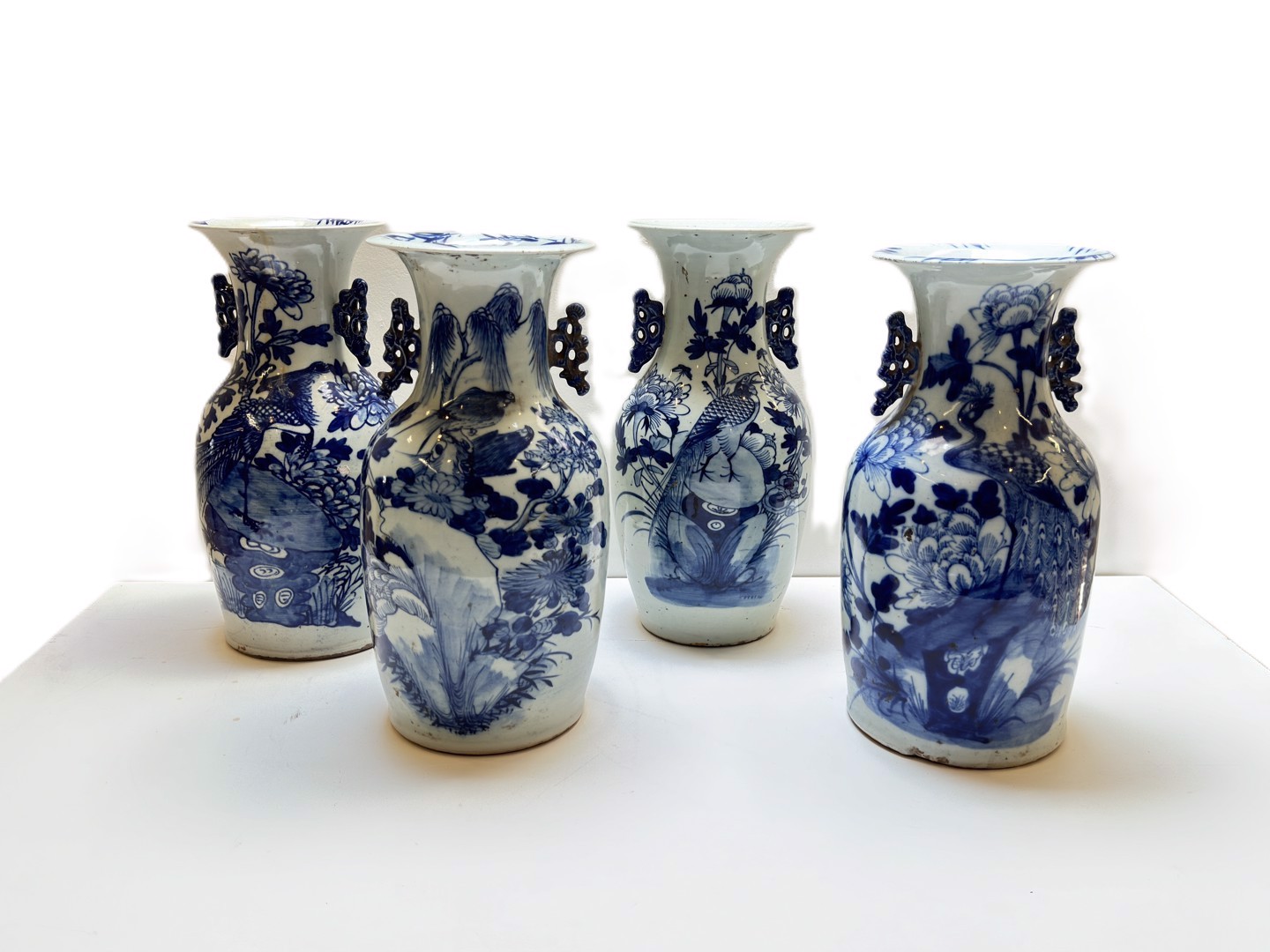 Chine, ensemble de 4 vases en porcelaine bleu et blanc, hauteur : 41 cm