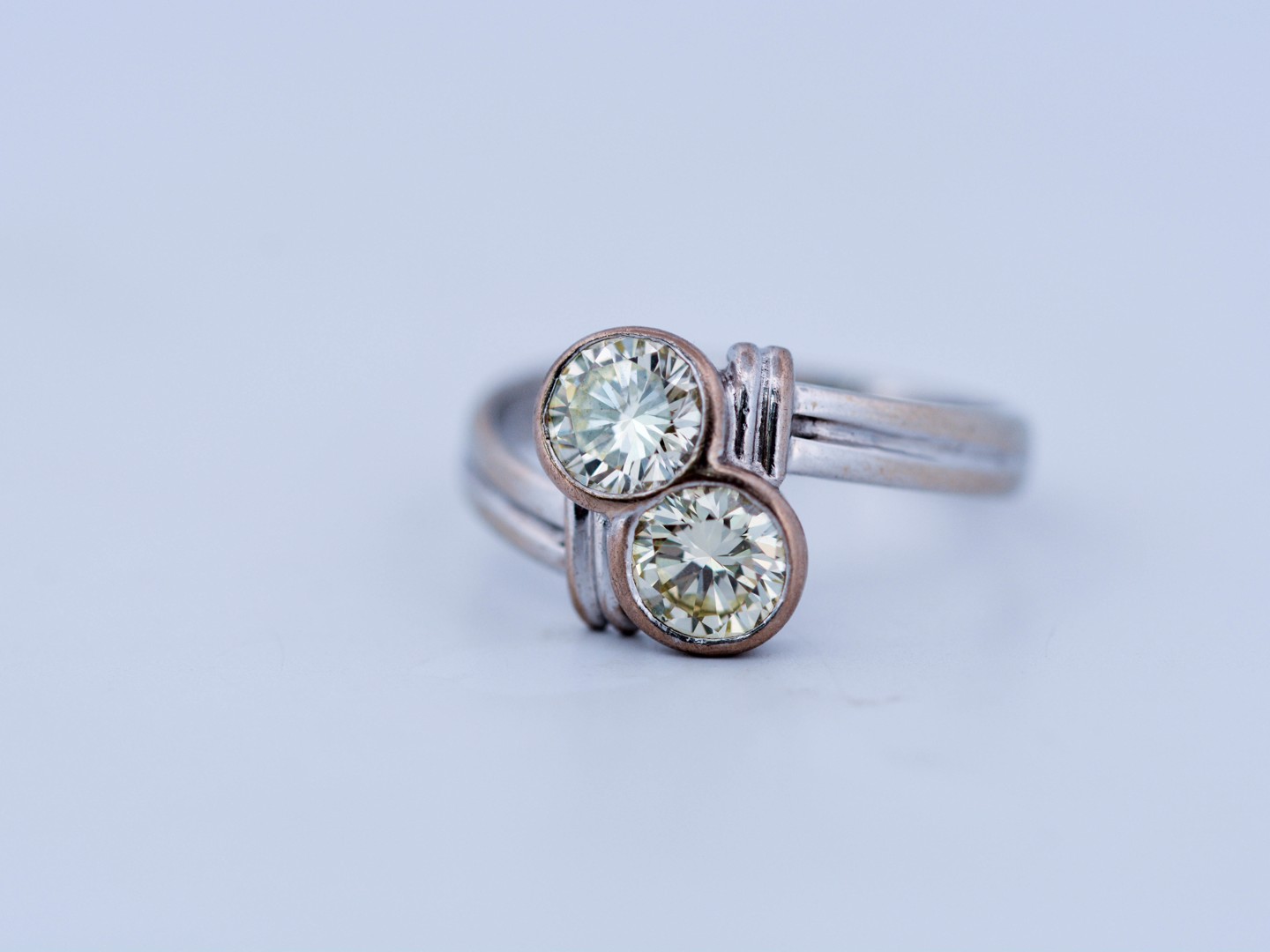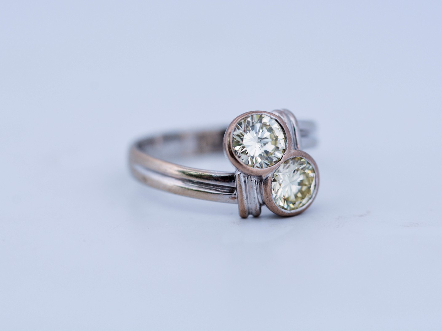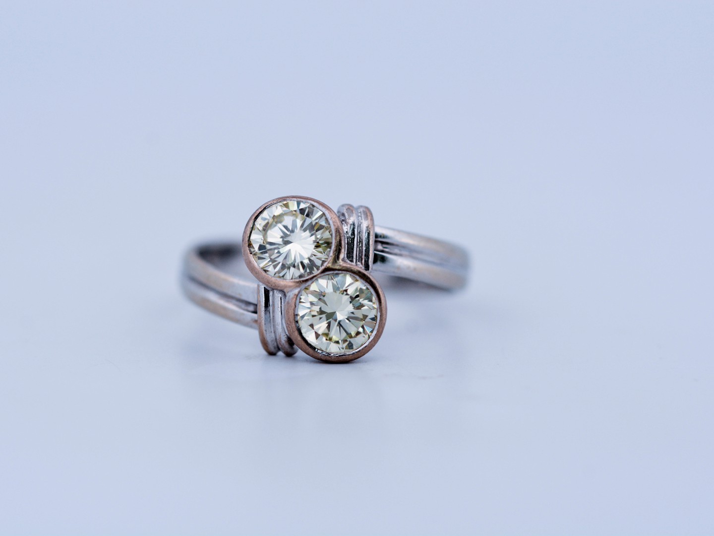 Bague Toi et Moi en or blanc avec deux diamants – env. 2,00 ct