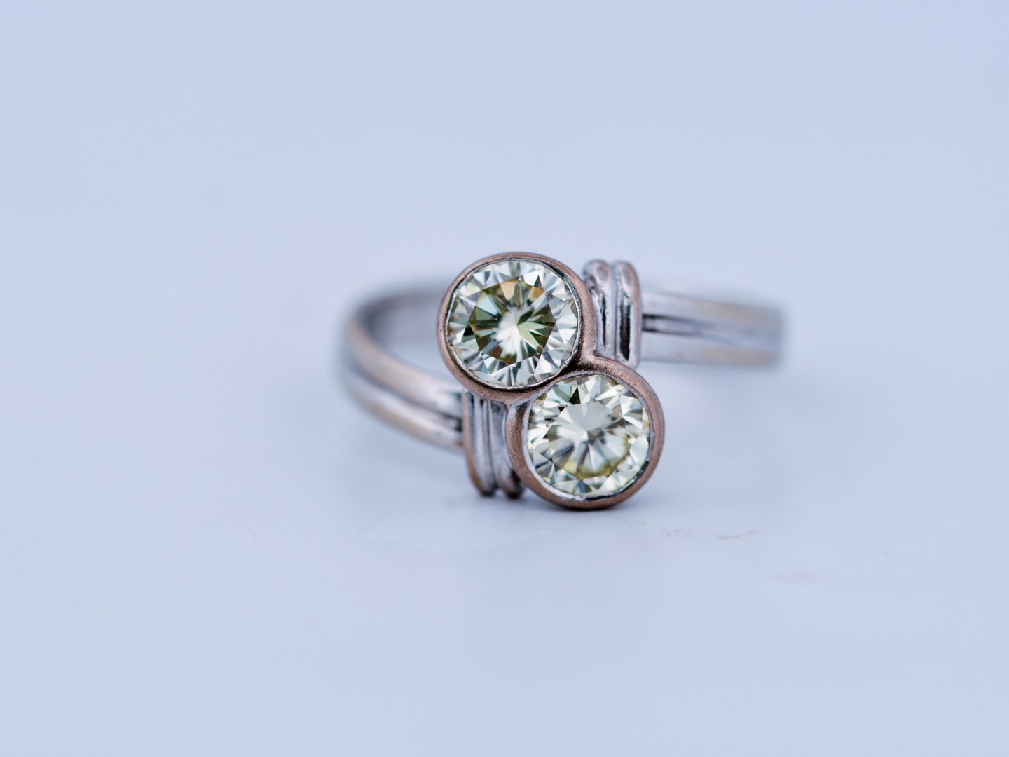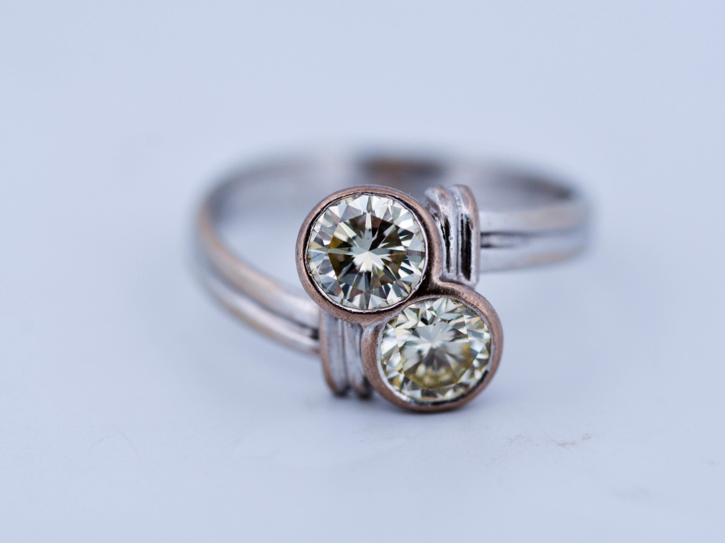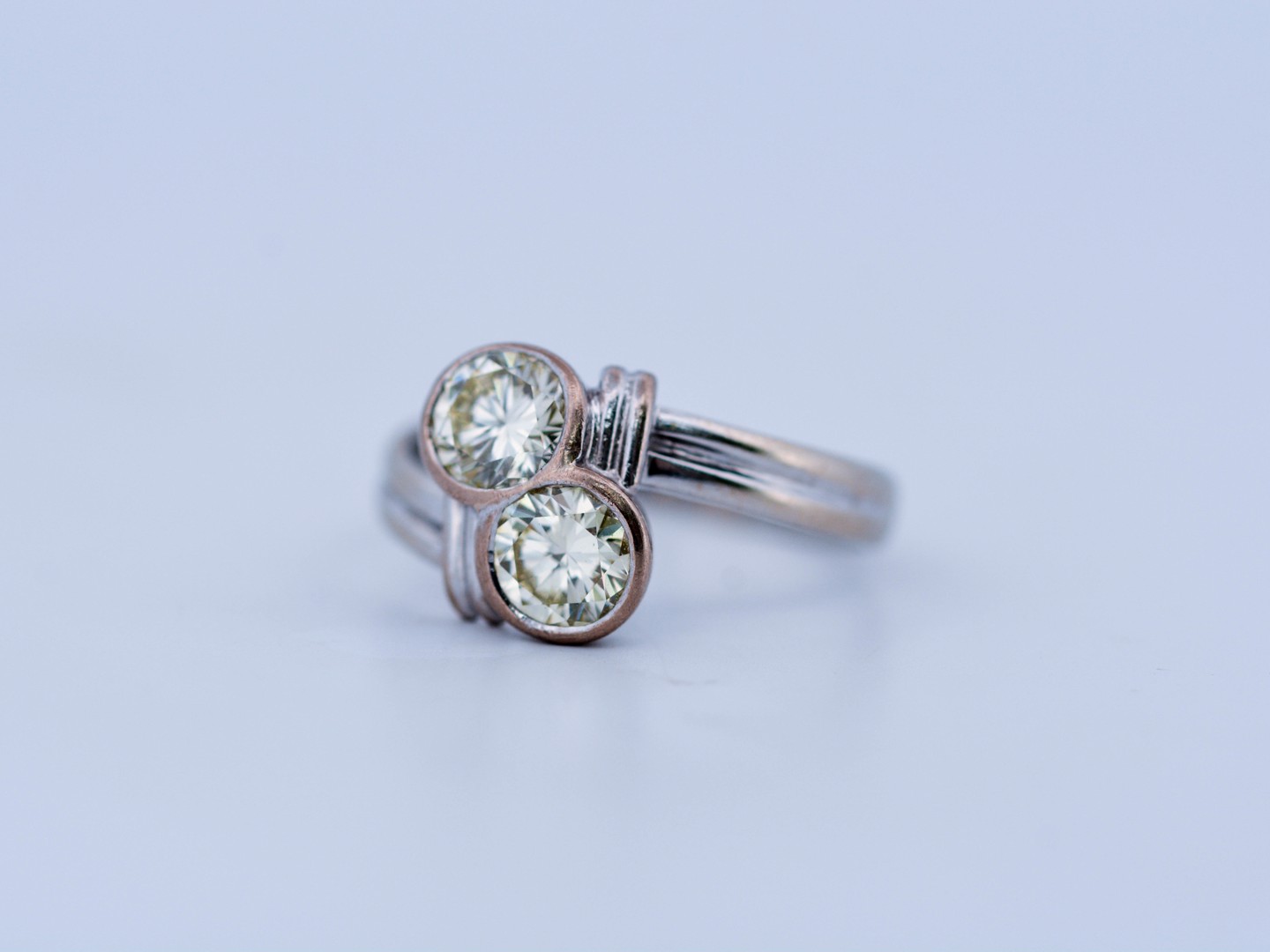 Bague Toi et Moi en or blanc avec deux diamants – env. 2,00 ct