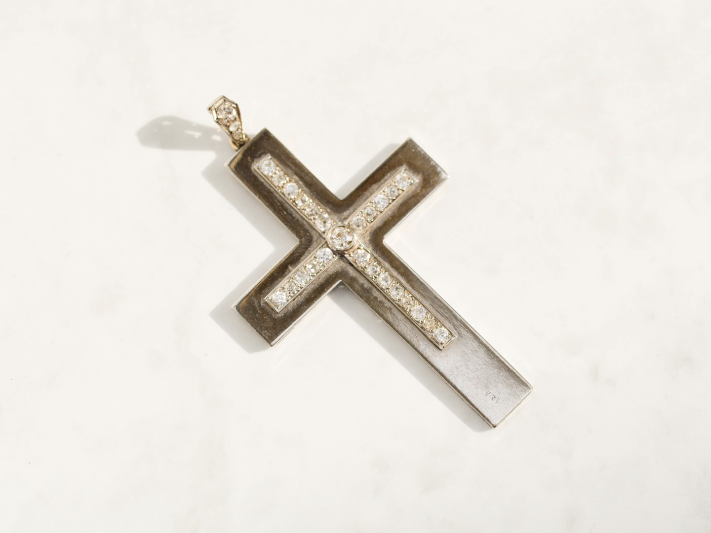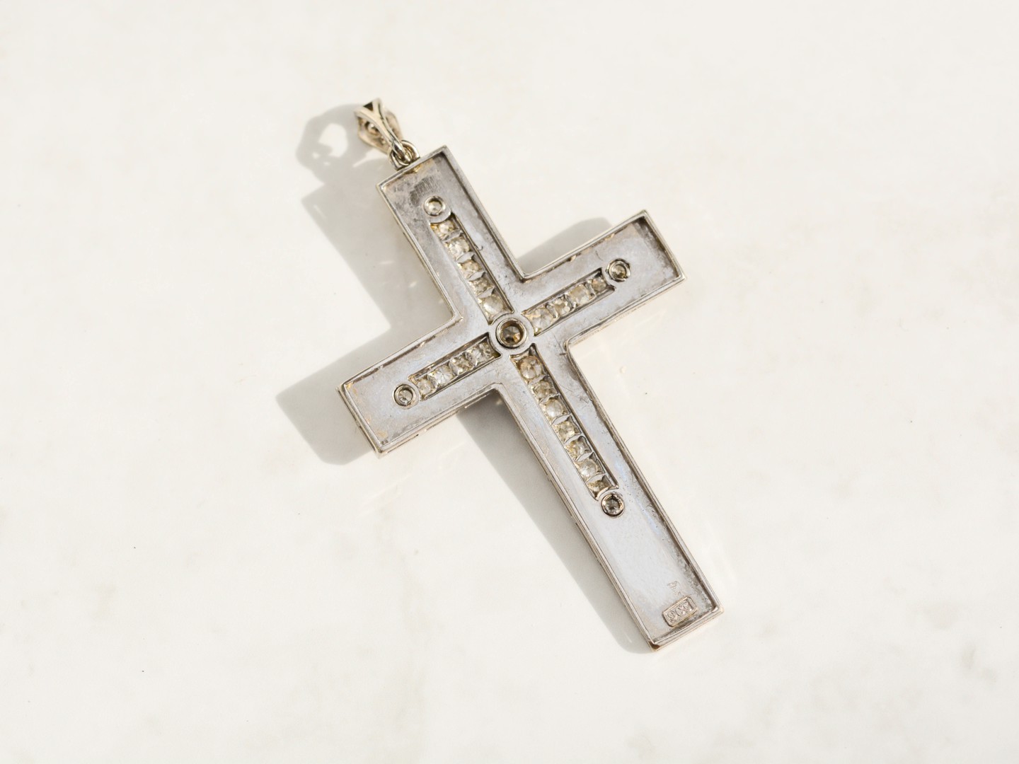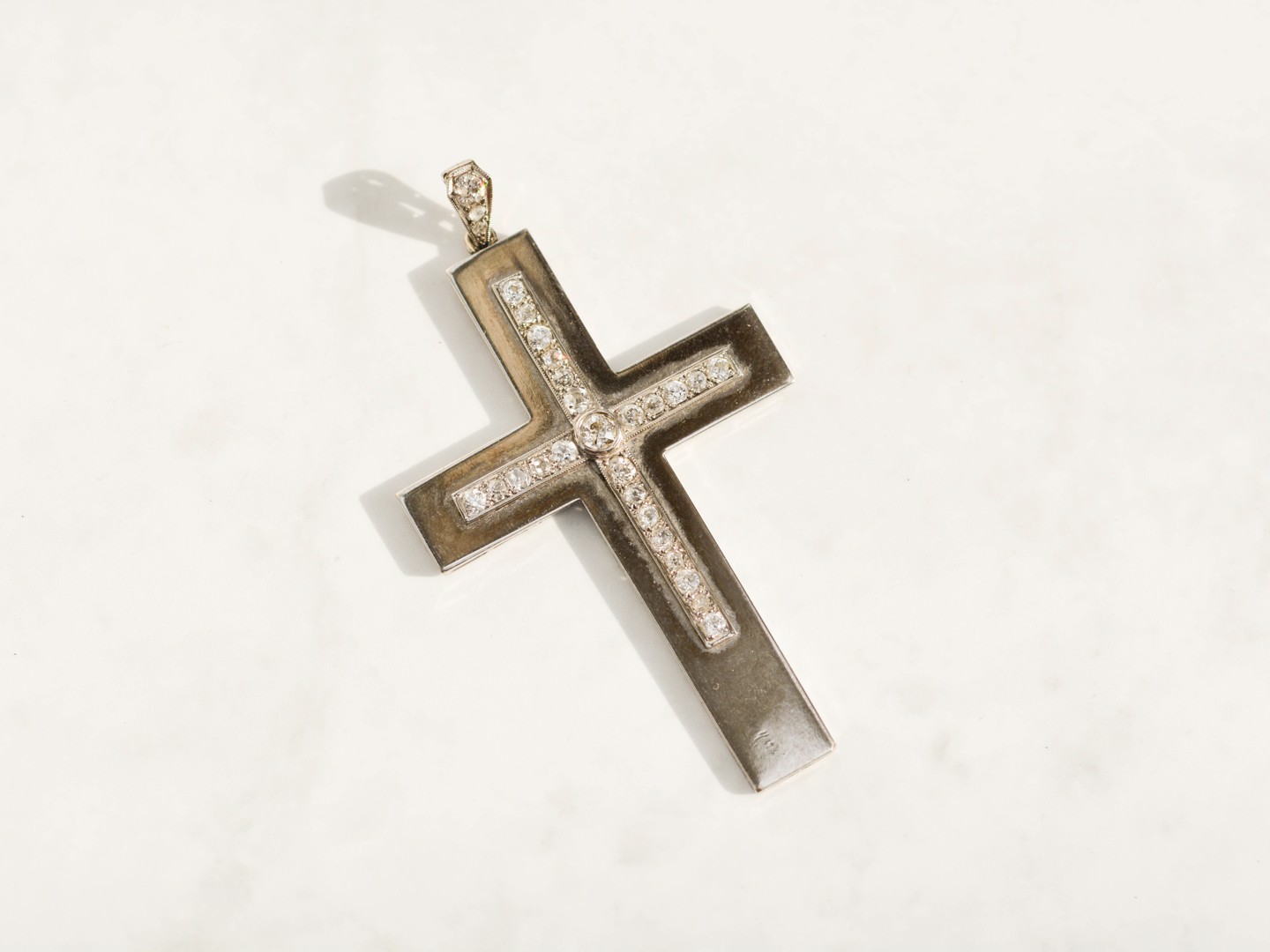 Pendentif croix antique en or blanc serti de diamants – env. 1,00 ct