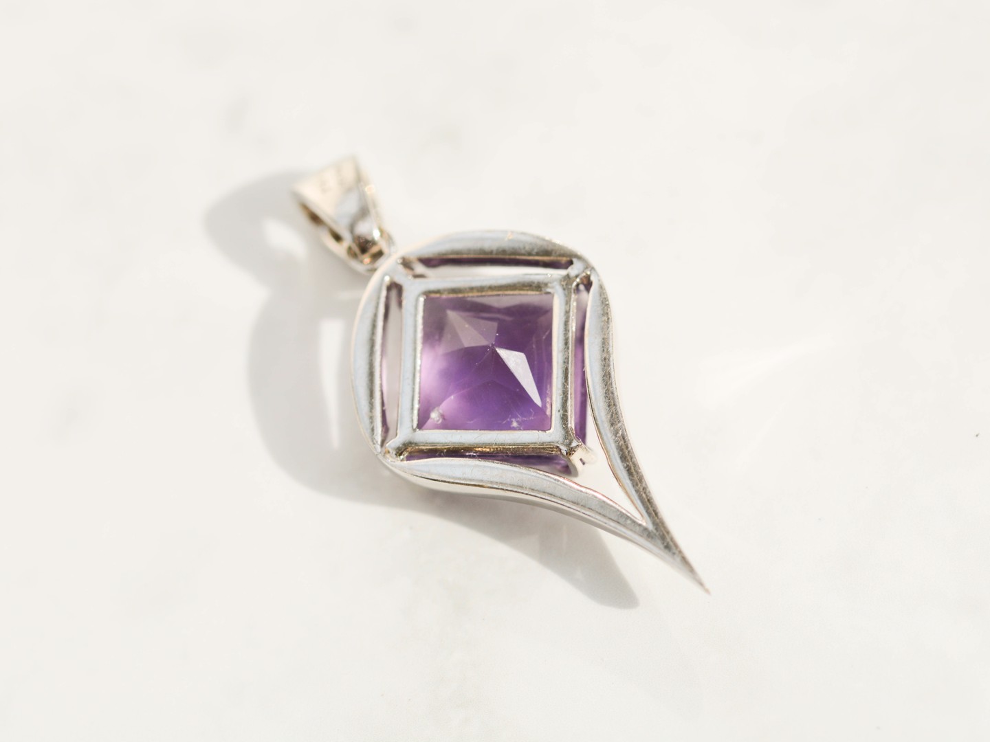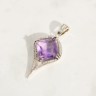 Un pendentif élégant en or blanc 18 ct (poinçon 750), orné en son centre d’une améthyste d’env. 10,00 ct. La pierre est entourée de 38 diamants taille brillant totalisant env. 0,50 ct (couleur I, pureté VS). Longueur : env. 37 mm. Une création raffinée où les tons violets profonds de l’améthyste se marient harmonieusement à l’éclat du diamant.