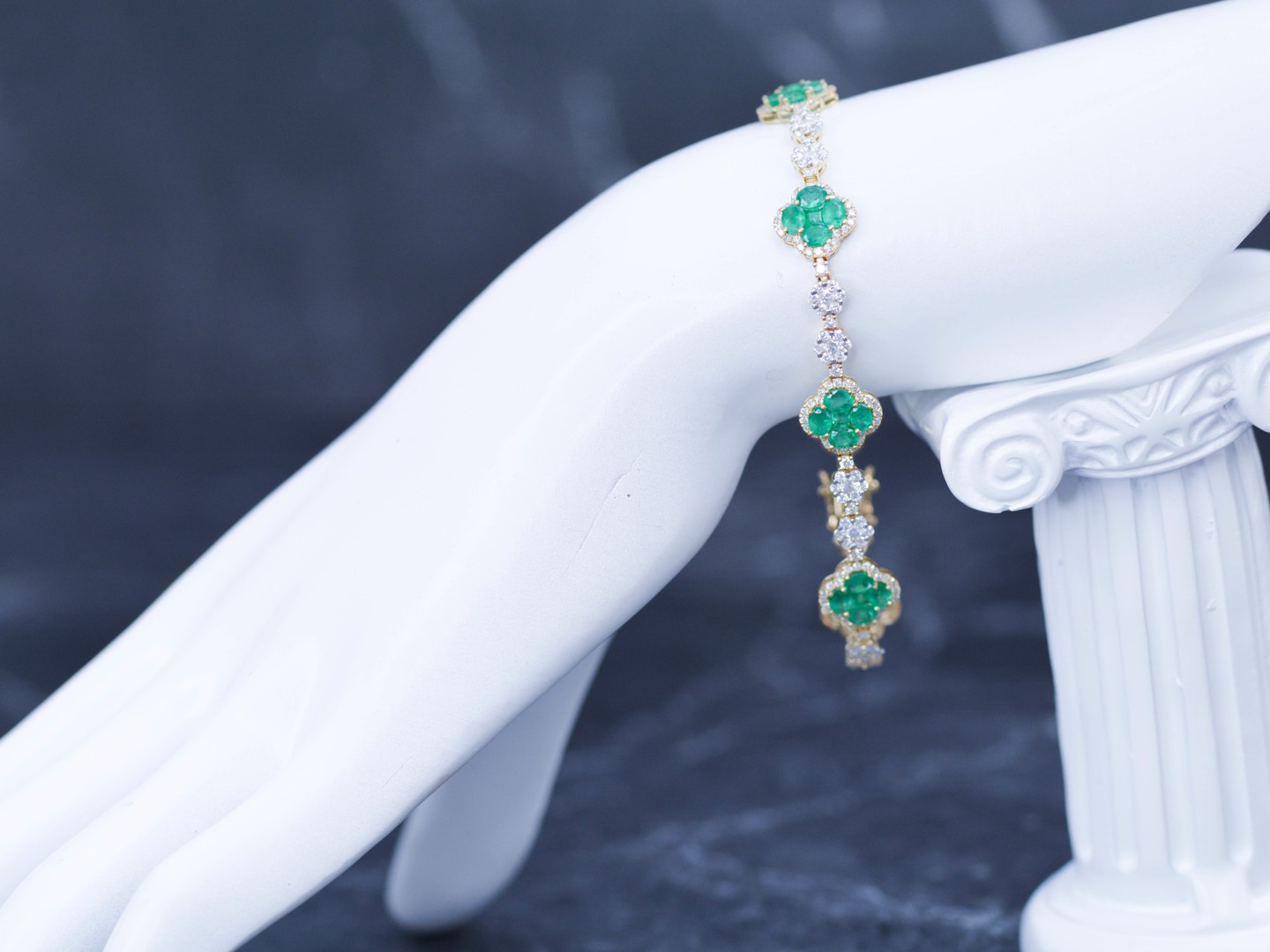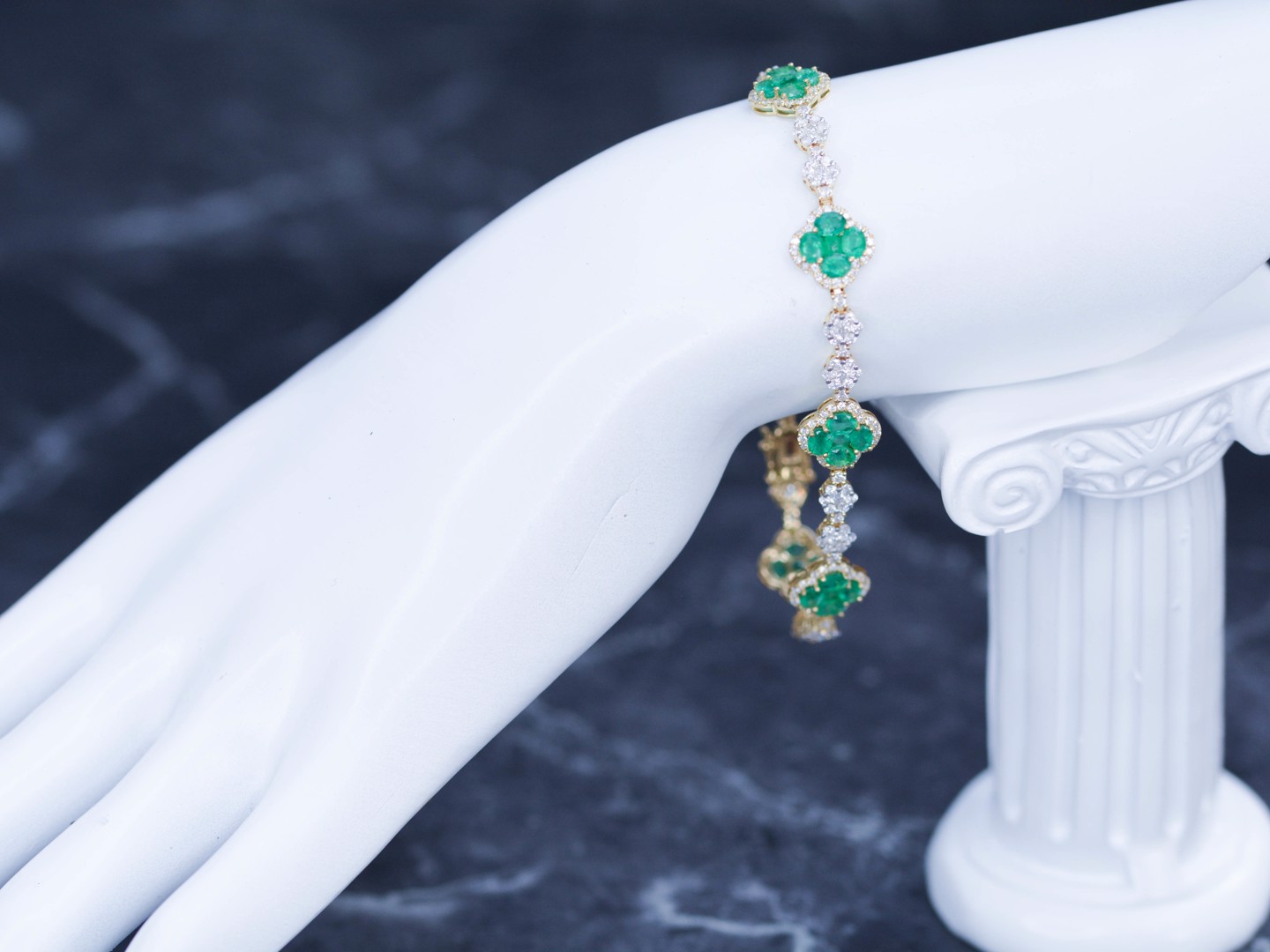 Bracelet sublime orné de 35 émeraudes, entouré d'environ 280 diamants.