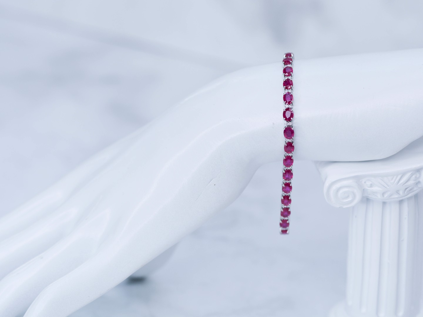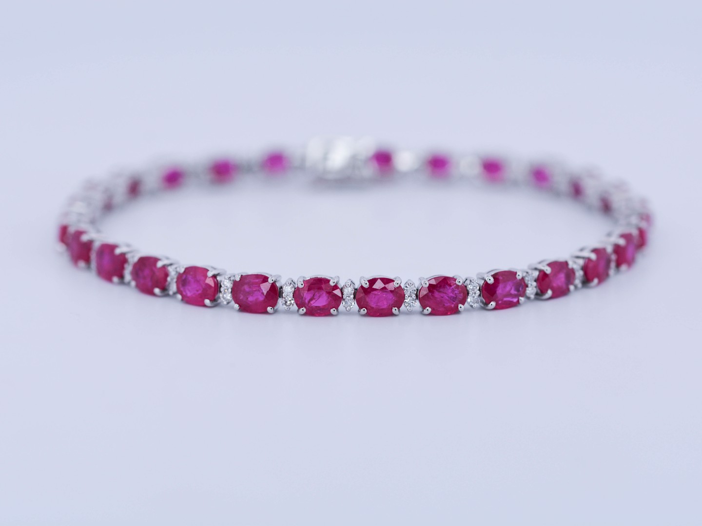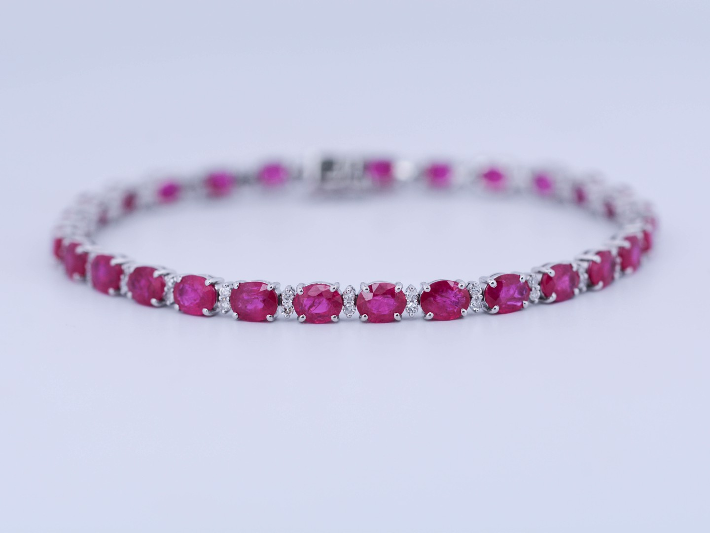 Bracelet rivière serti de 28 rubis : +-12,30CT (marqué) + 56 petits diamants blancs : +-0,55CT