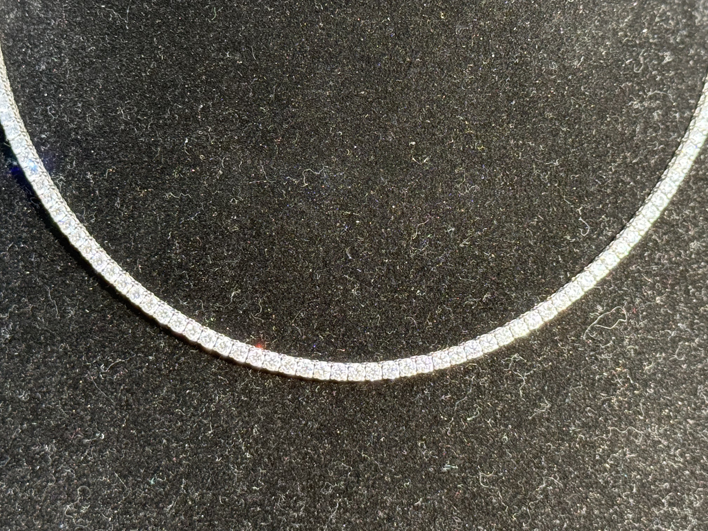 Collier de qualité rivière, orné de 158 diamants blancs taillés en brillant, total : +-9,40 CT.