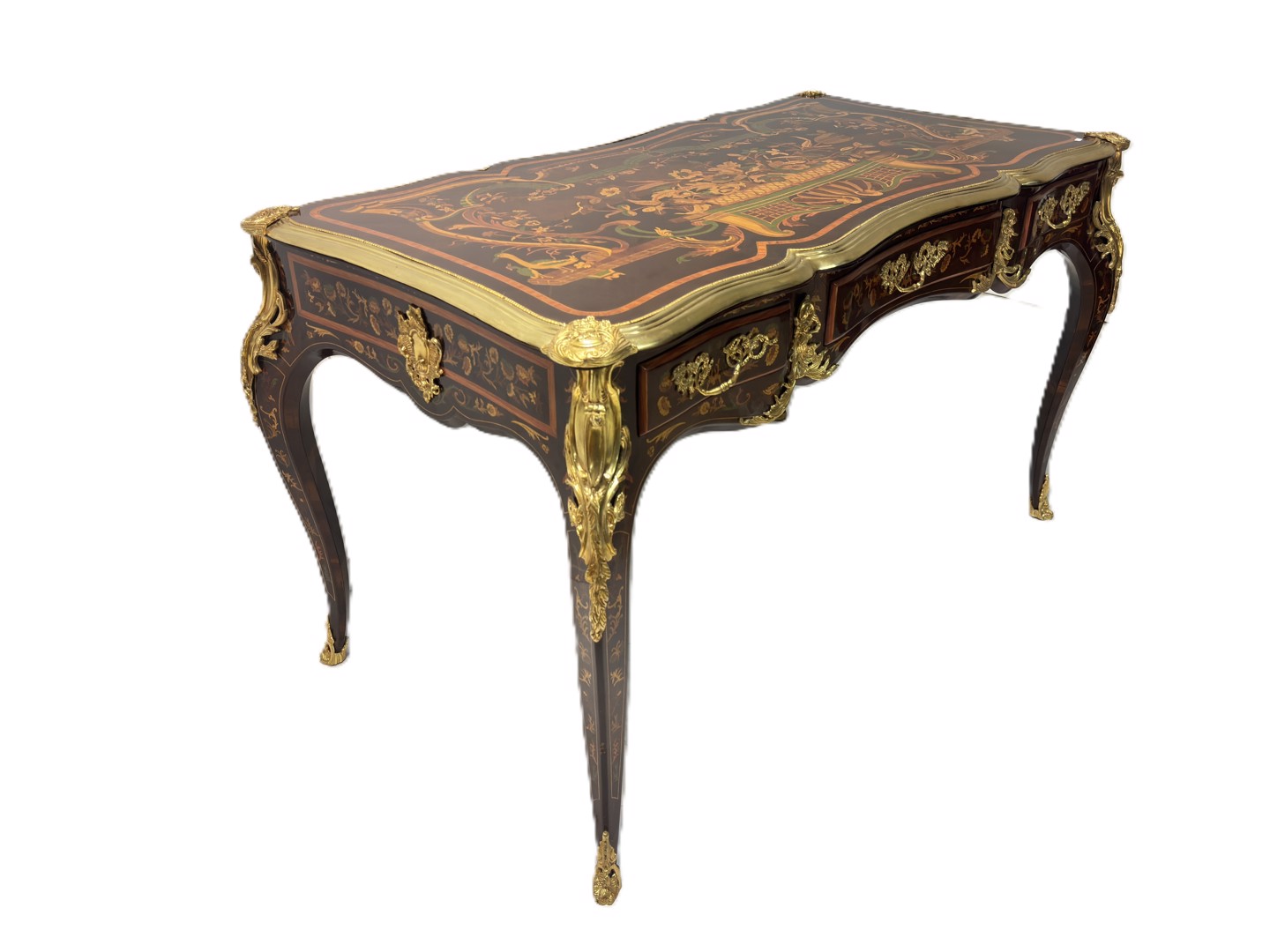 Bureau de style Louis XV avec marqueterie et bronze doré