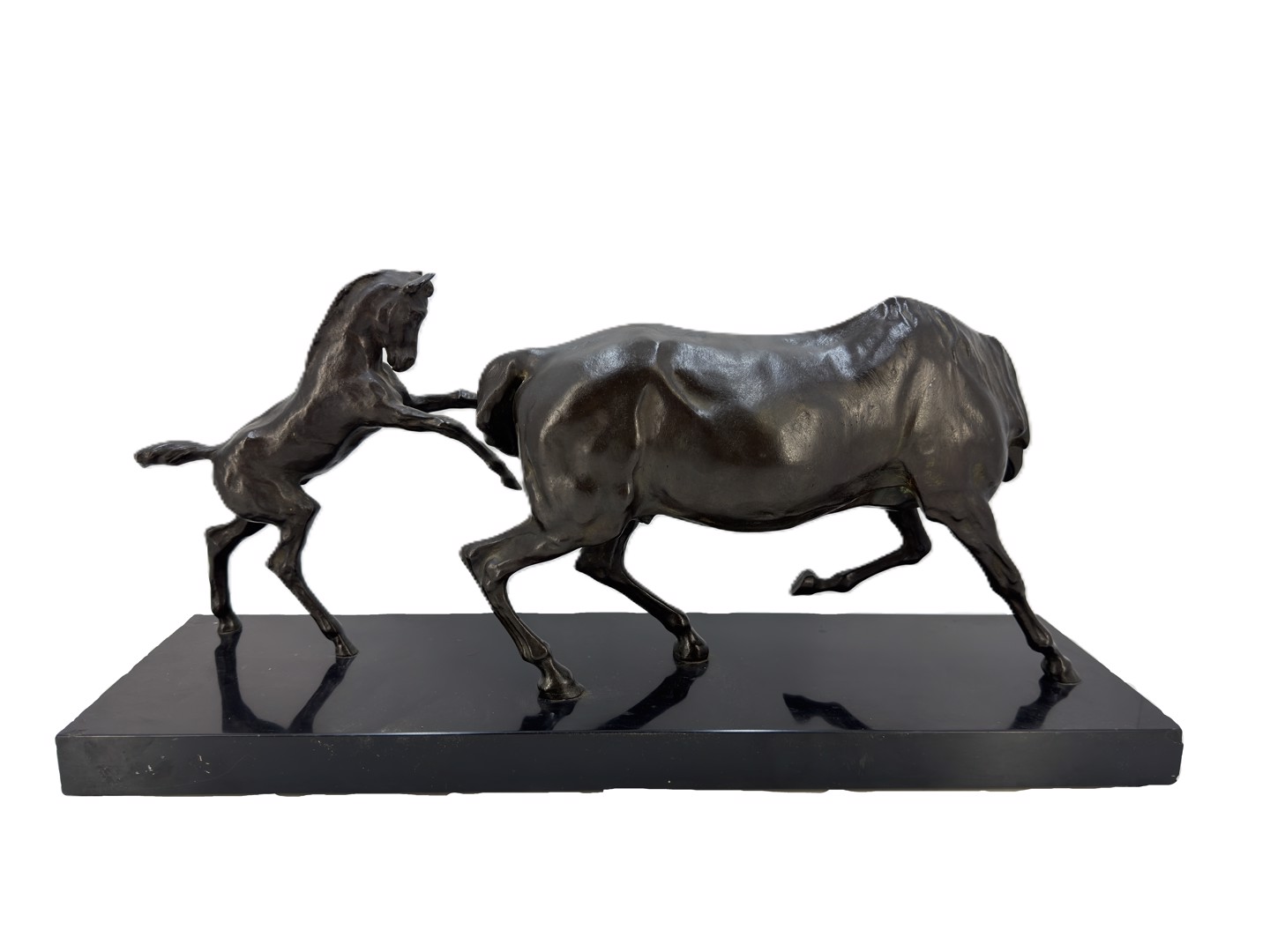 Bronze, jument et poulain. Longueur : 60 cm et hauteur : 30 cm