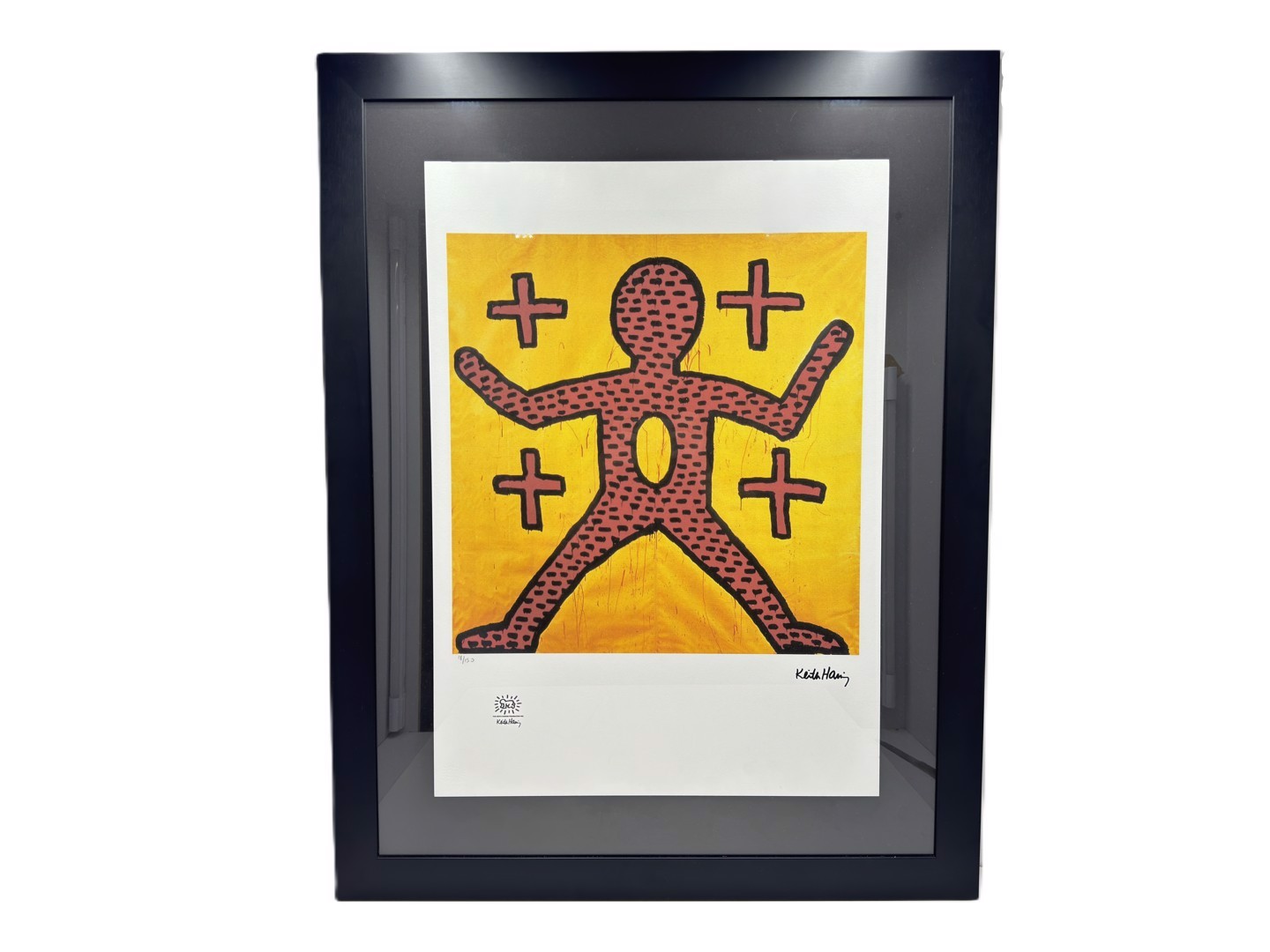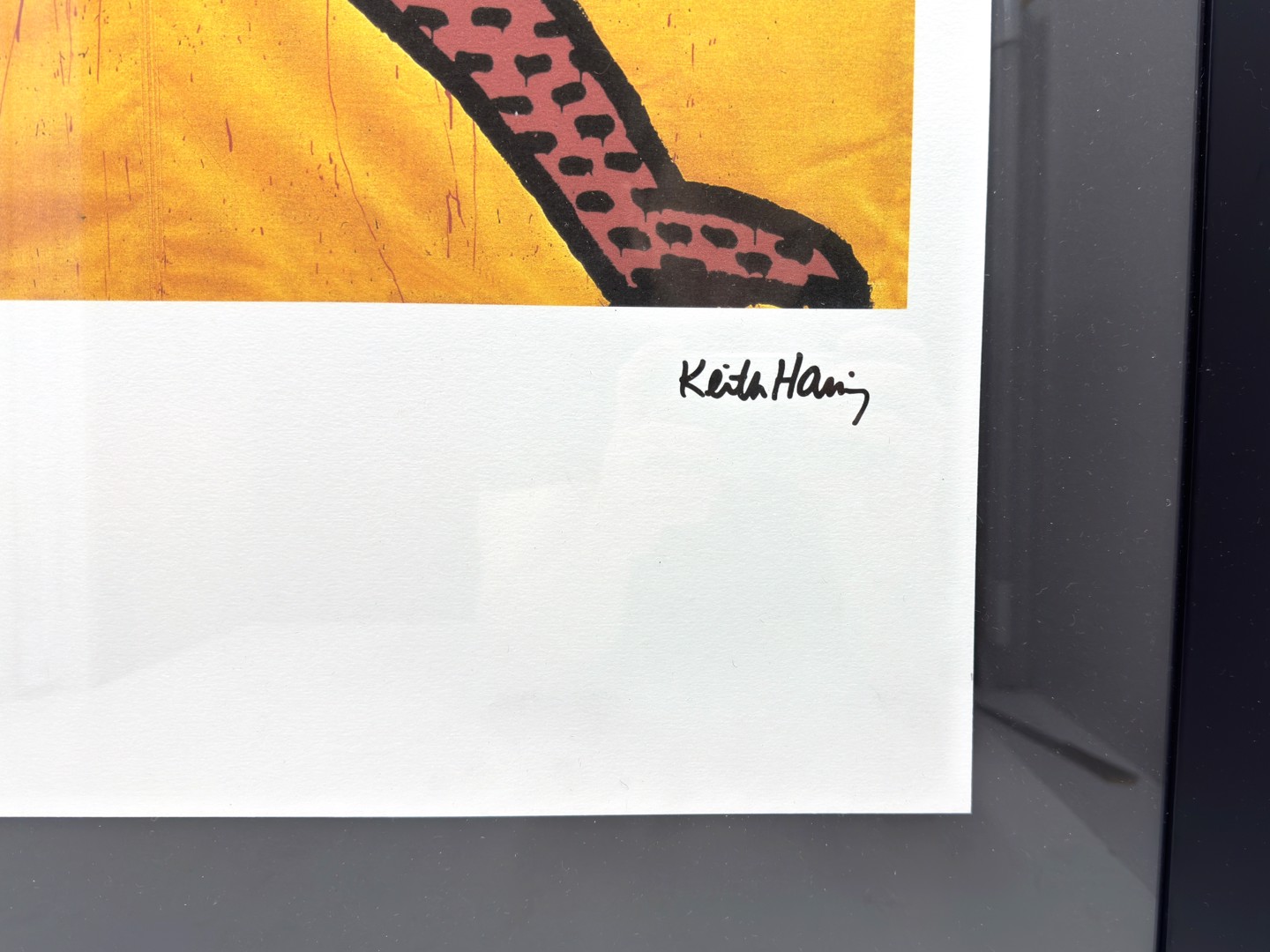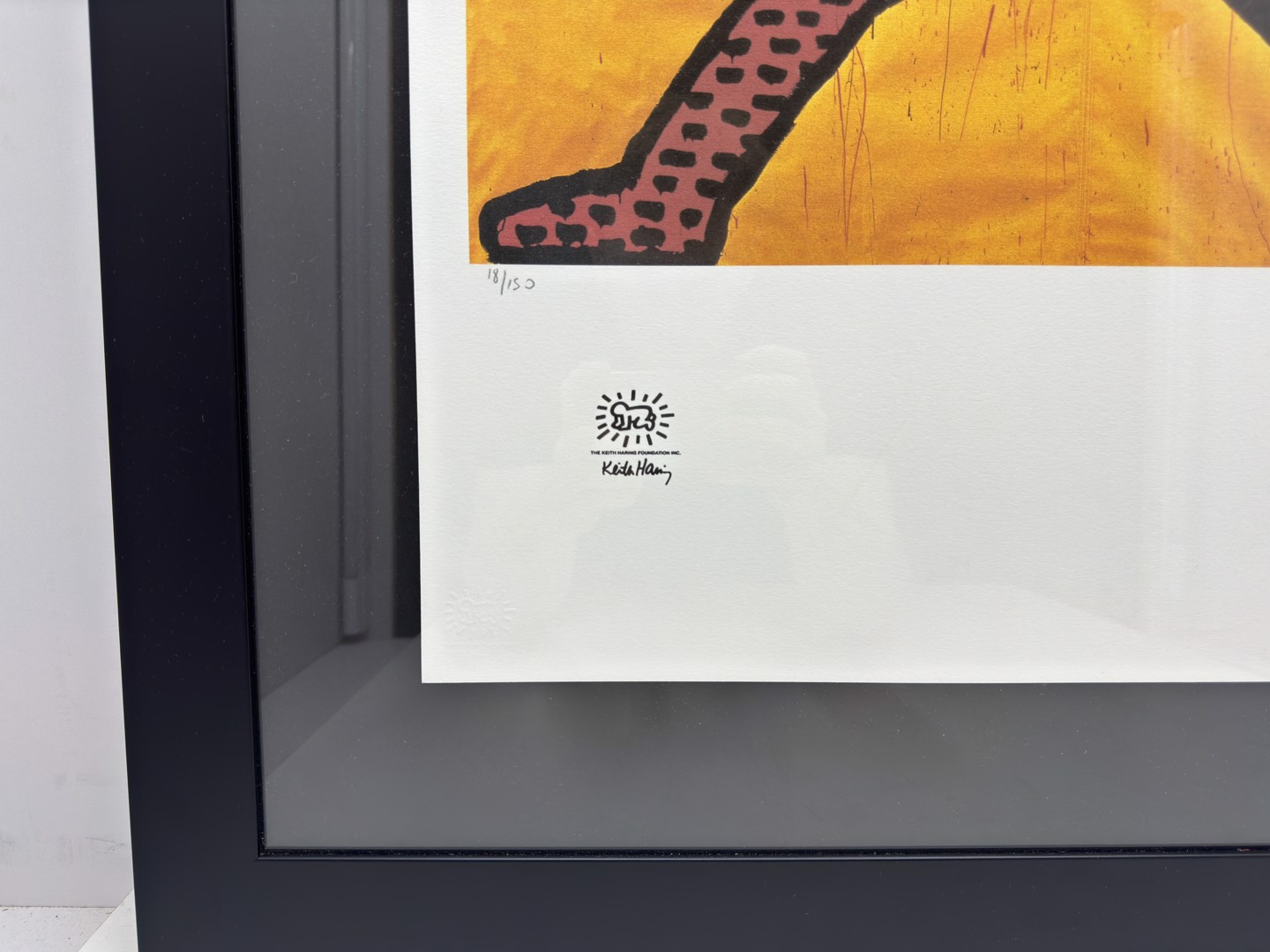 sérigraphie dessinée sur la plaque : Keith Haring et numérotée : 18/150, "Sans titre" avec tampon : The Keith Haring Foundation. Dimensions : 70 x 50 et 94 x 73