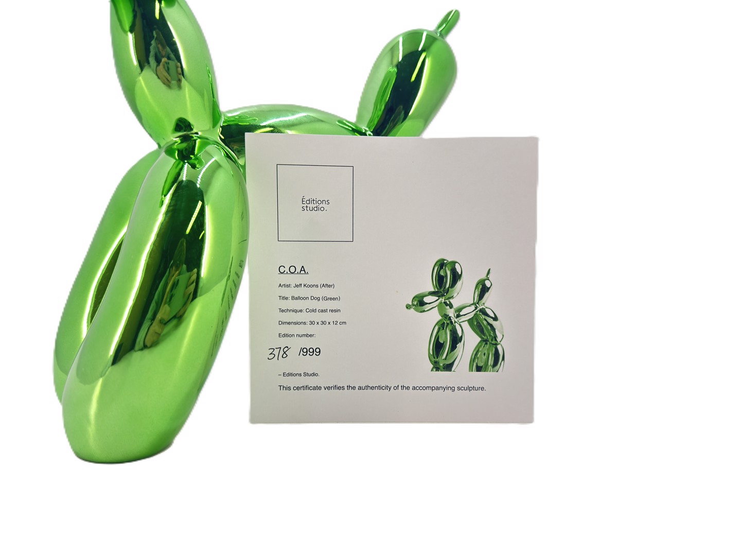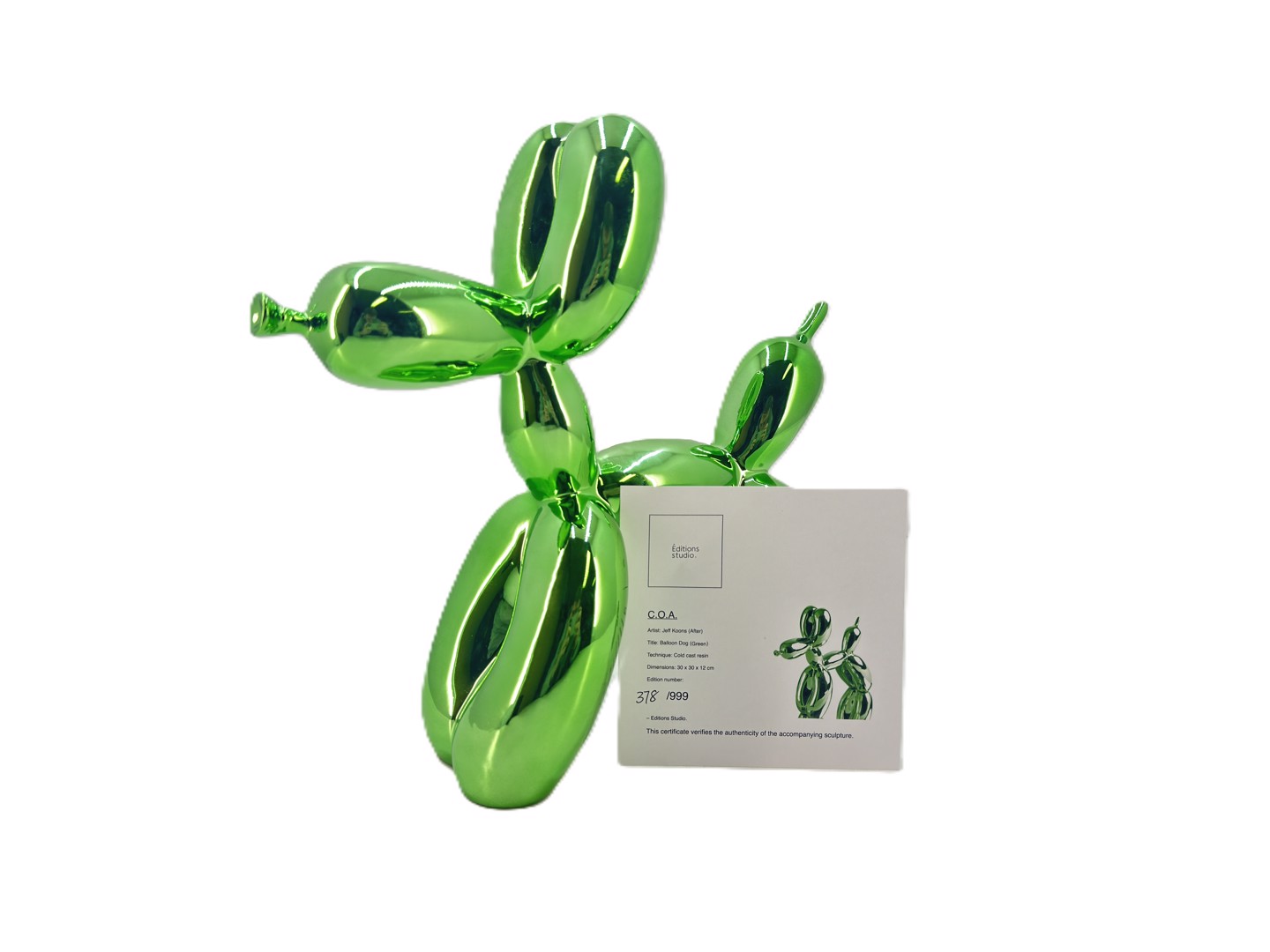 "Ballon chien - vert" en résine coulée à froid (résine coulée à froid), éditions studio numérotées 378/999 dim. 30 x 30 x 12 cm avec certificat