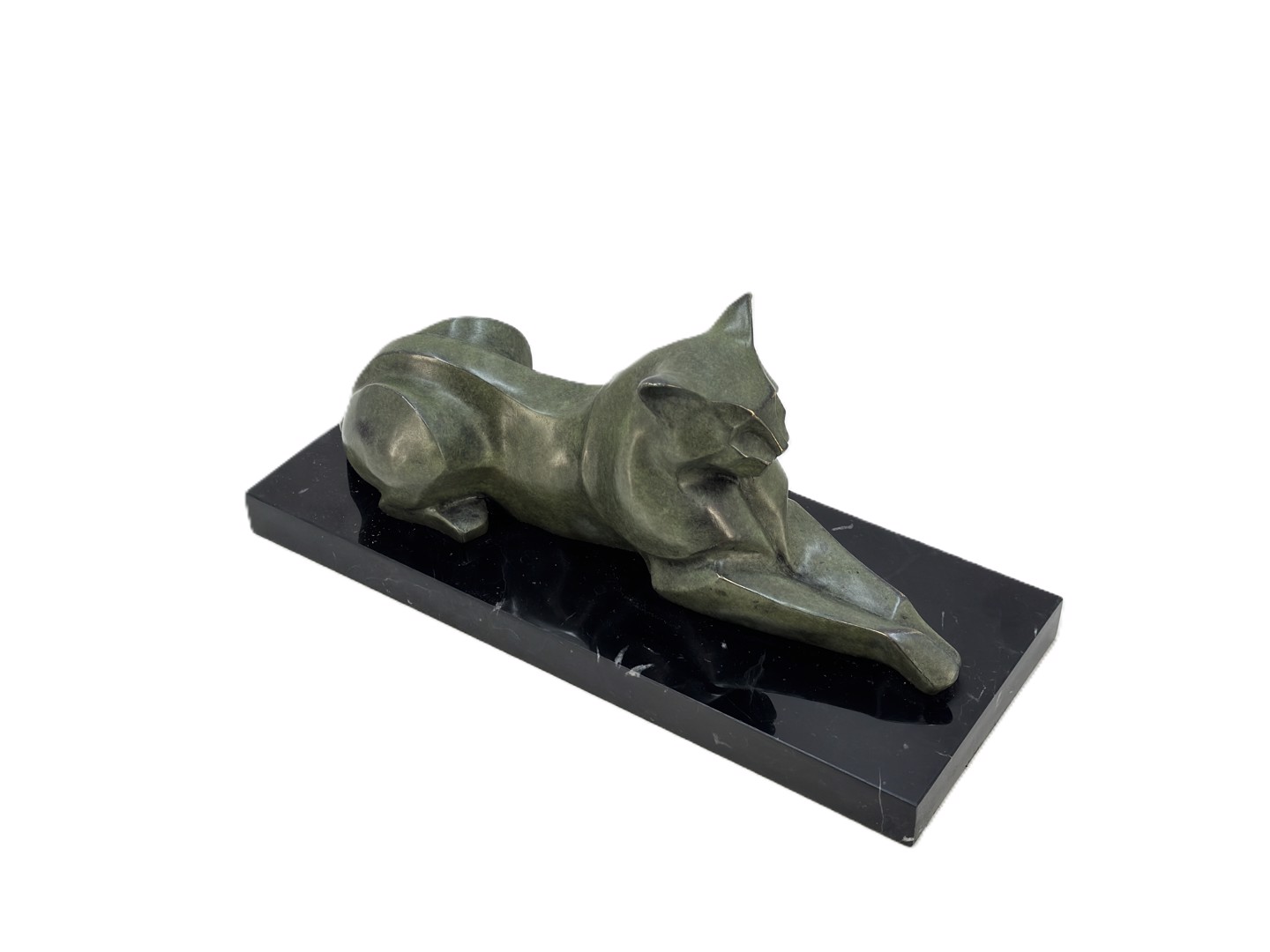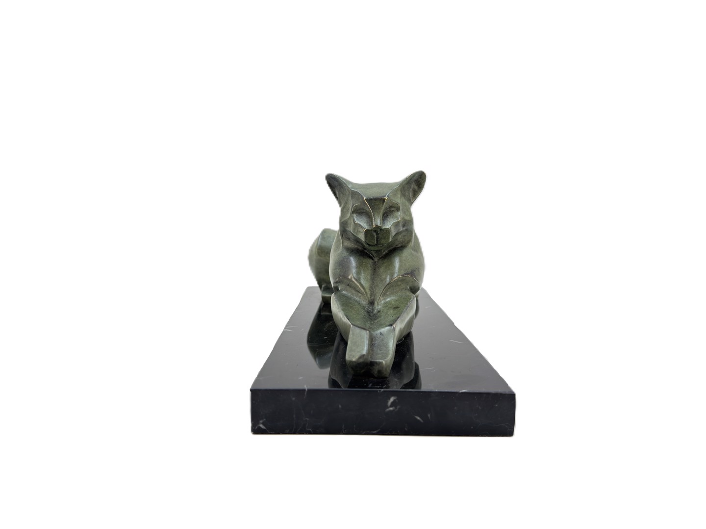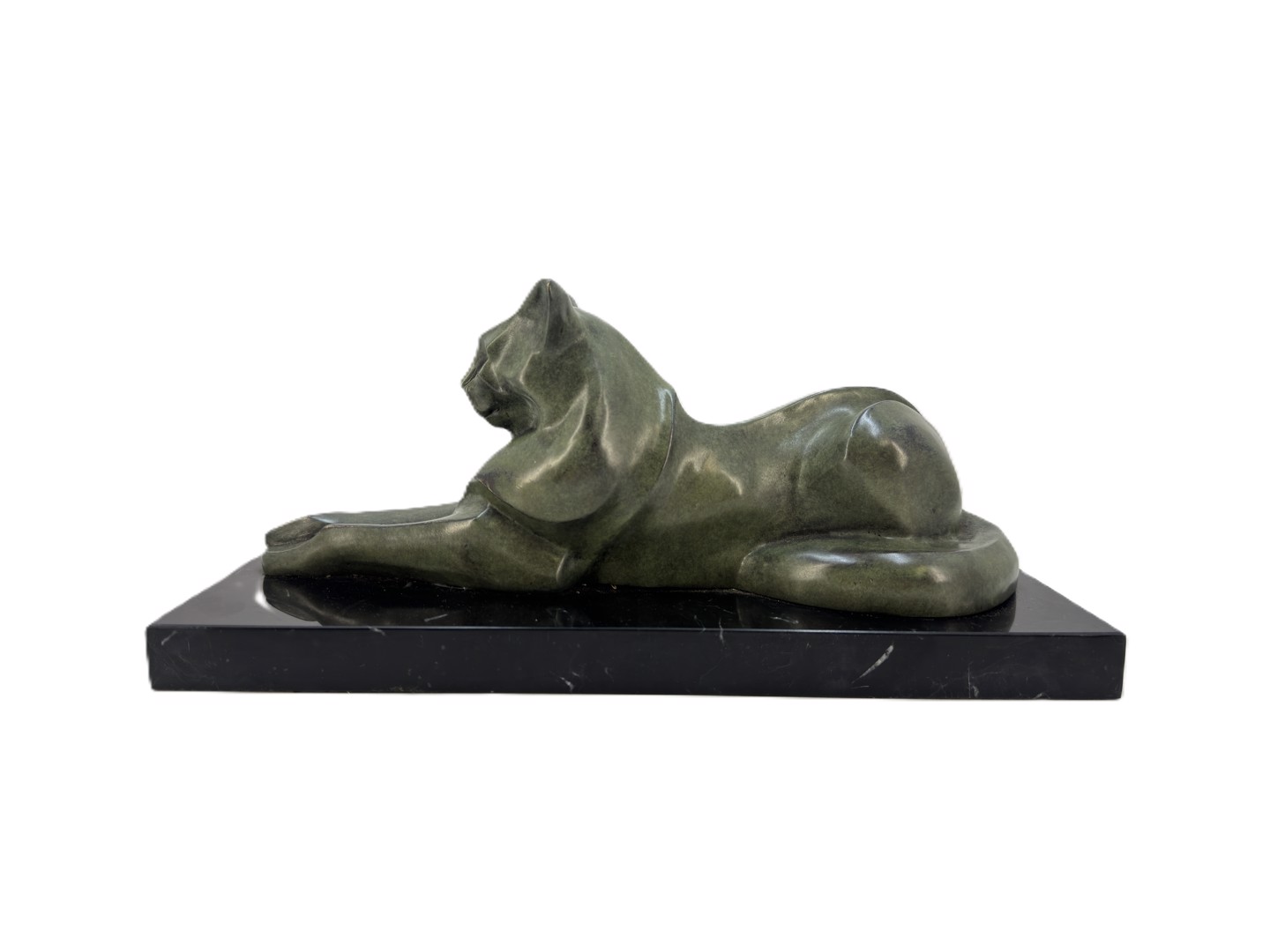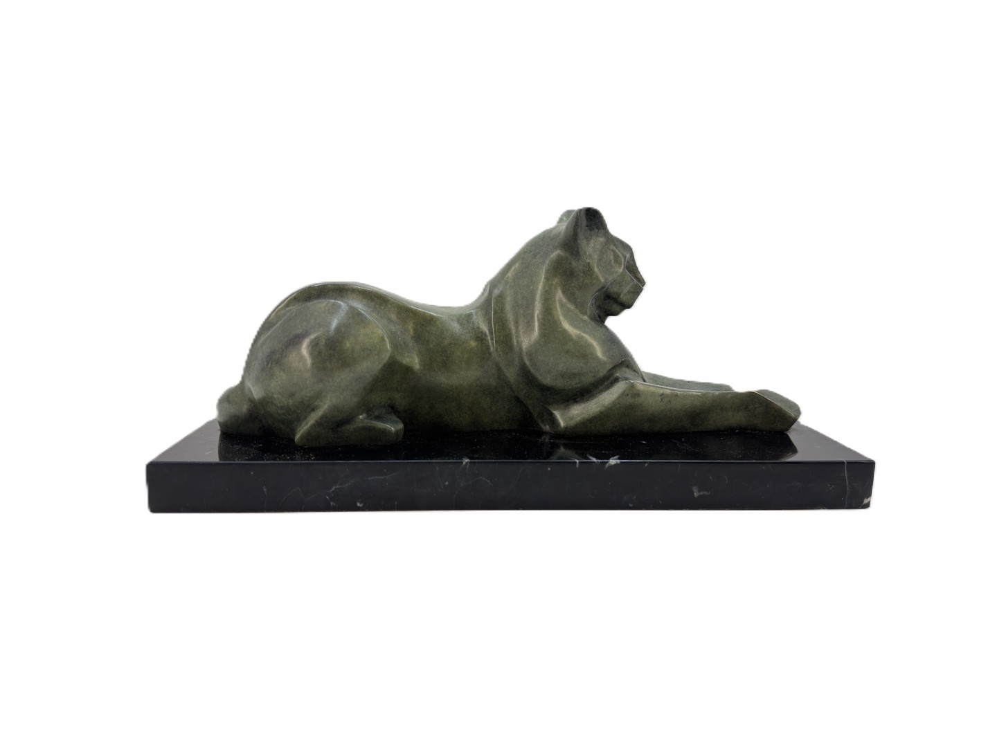 Panthère en bronze avec patine verte. Longueur : 35 cm
