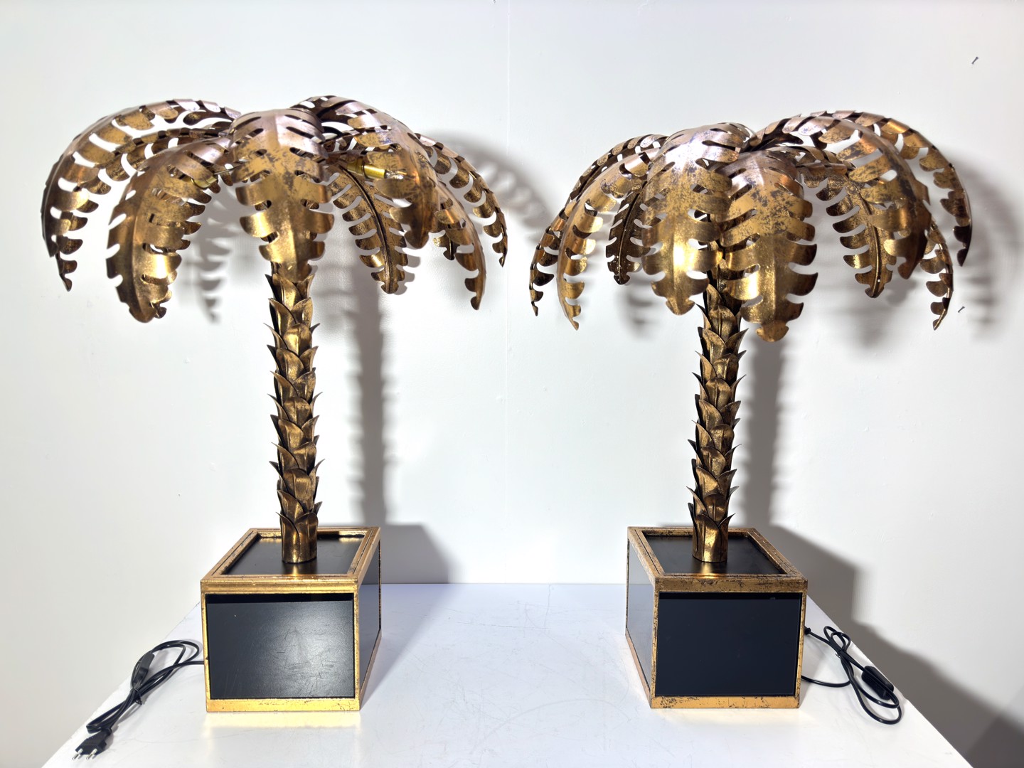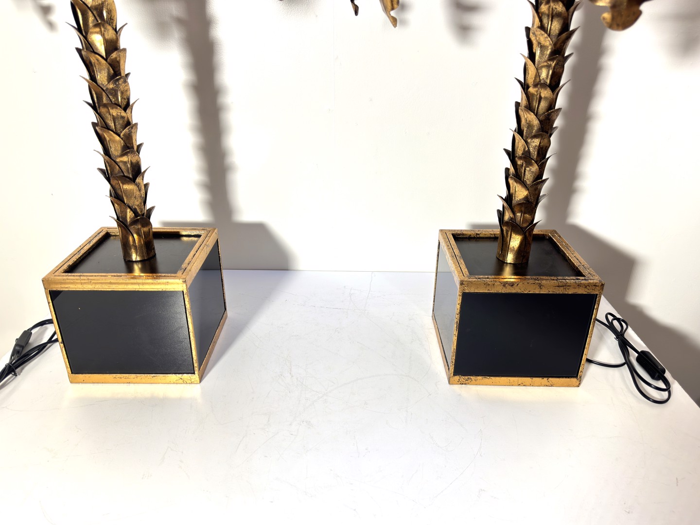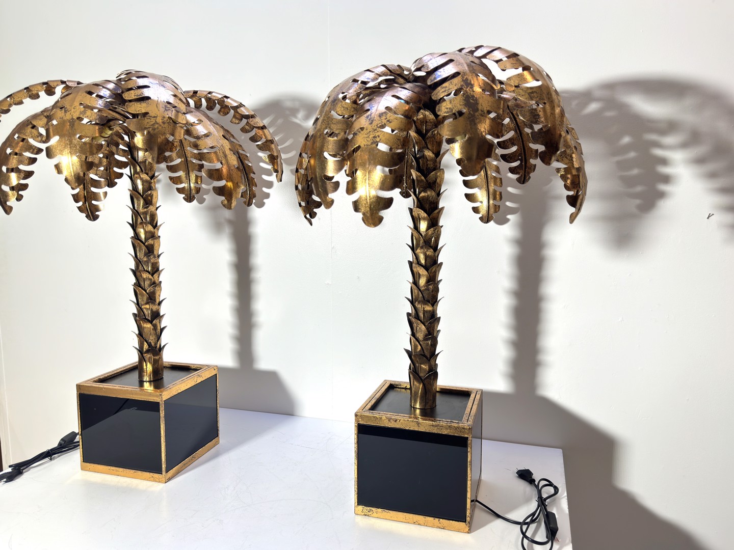 Quelques lampes d'armoire, palmiers en fer doré. Hauteur : 85 cm