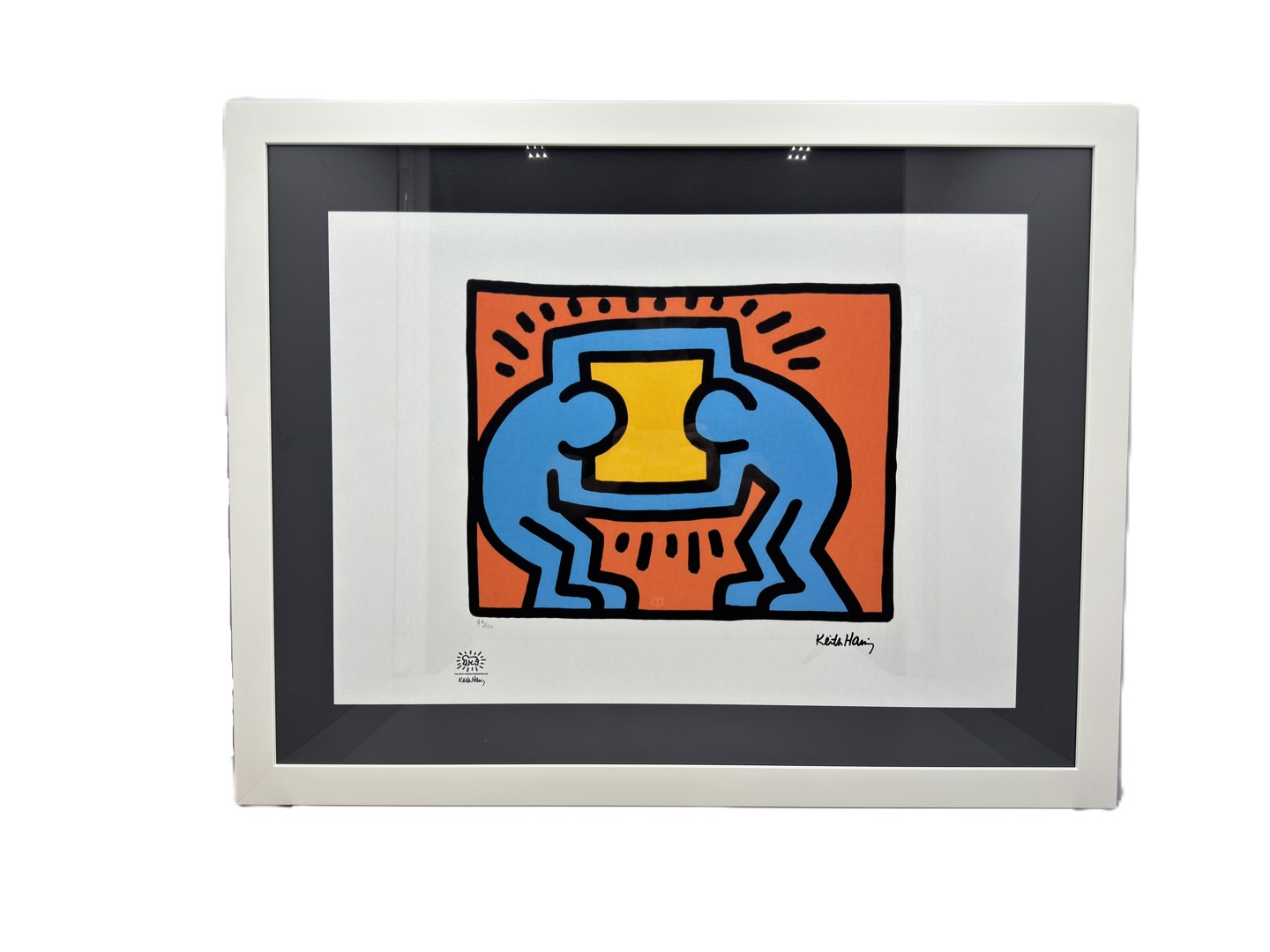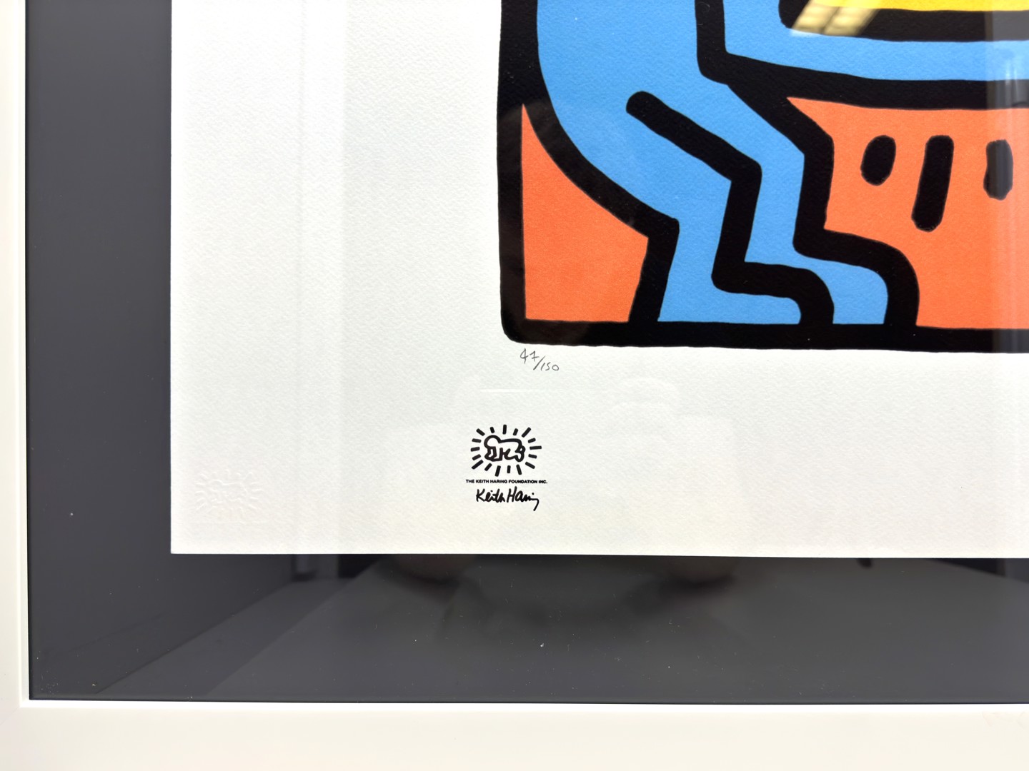 Sérigraphie dessinée sur la plaque : Keith Haring et numérotée : 47/150, "Pop Shop VI" avec tampon : The Keith Haring Foundation. Dimensions : 50 x 70 et 71 x 91
