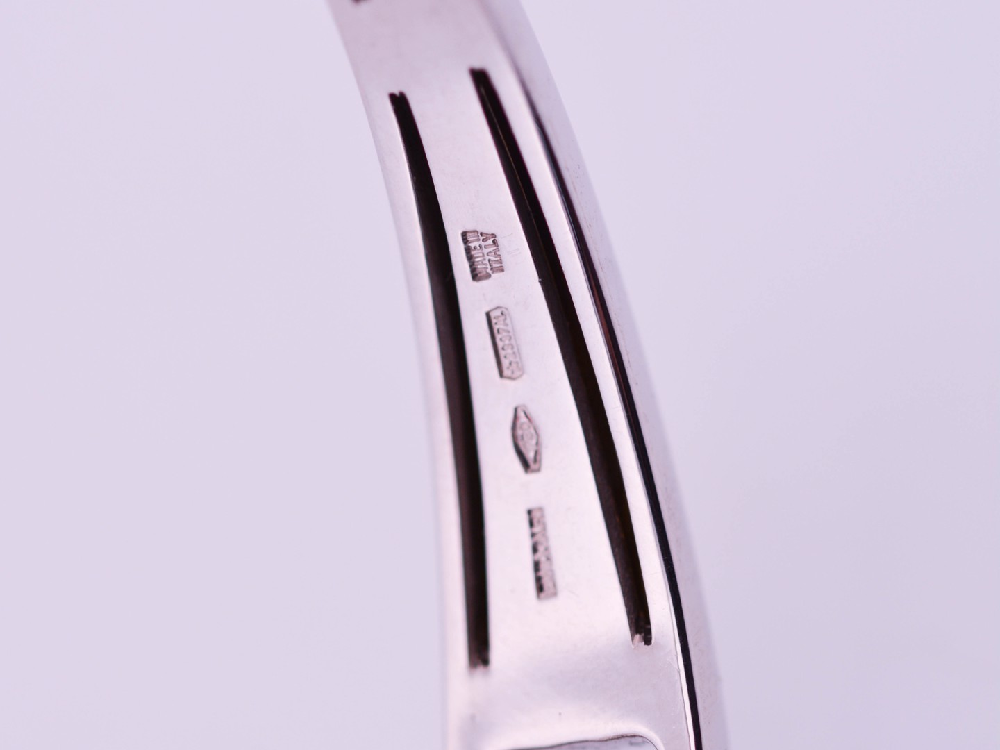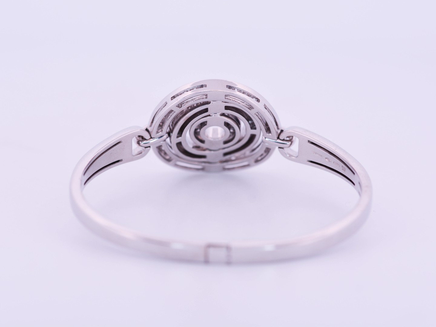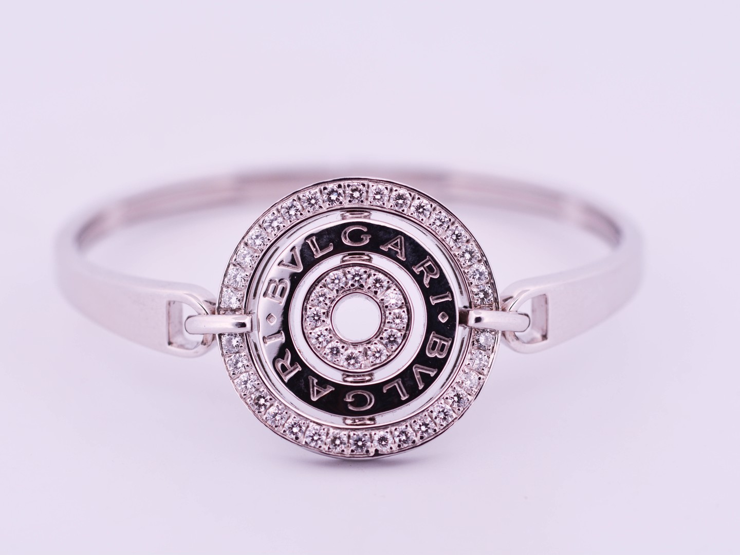 Somptueux bracelet signé Bulgari, réalisé en or blanc 18 carats (poinçon 750), serti de 46 diamants taille brillant pour un poids total d’environ 1 carat.
