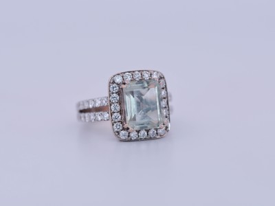 Bague sertie d'un aquamarine d'environ 4.00CT, entourée de 60 diamants : environ 1.20CT