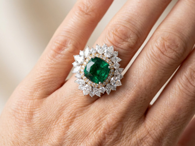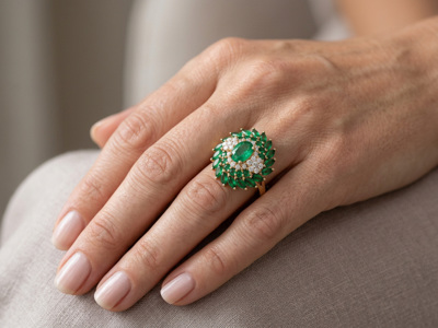 Bague Exclusive en Or Jaune 18 ct avec Émeraude et 2,5 ct de Diamants