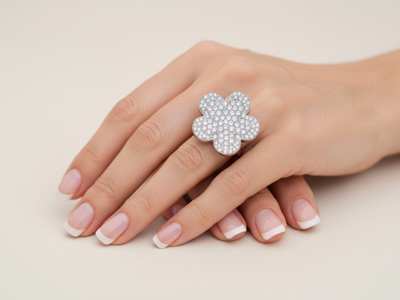 Bague exclusive en or blanc inspirée du modèle Van Cleef & Arpels – env. 3,00 ct
