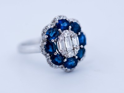 Bague en or blanc avec saphirs et diamants – env. 2,65 ct au total