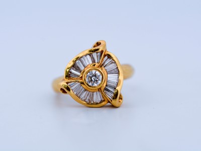 Bague en or jaune avec diamant central et diamants baguette – env. 1,50 ct