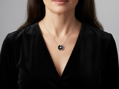 Collier en or blanc 18 ct avec pendentif en onyx noir et diamants – total 0,40 ct