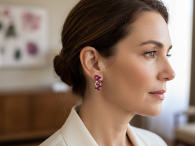 ongues boucles d’oreilles en or blanc avec rubis et diamants – env. 4,00 ct au total