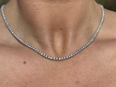 Collier de qualité rivière, orné de 158 diamants blancs taillés en brillant, total : +-9,40 CT.