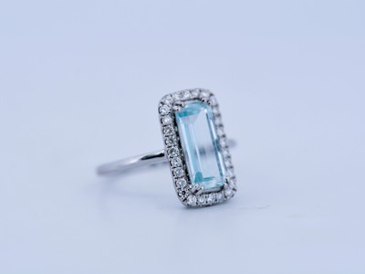 Bague en or blanc avec aigue-marine 1,60 ct et diamants – env. 1,90 ct au total