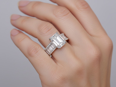 Bague Sublime en Or Blanc avec Émeraude de 4 ct et 4,80 ct de Diamants
