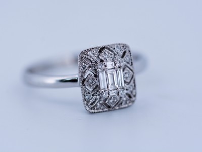 Bague Art Déco en or blanc sertie de diamants