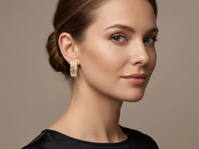 Paire de boucles d’oreilles mode serties illusion serties de diamants baguette + taille brillant