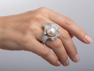 Bague en or blanc avec perle et diamants – env. 2,00 ct
