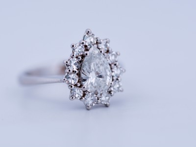 Bague en or blanc avec diamant poire et brillants – 1,50 ct