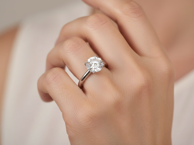 Bague de Qualité en Platine avec Diamant Solitaire de 3,40 ct Certifié HRD et Pierres d’Accent