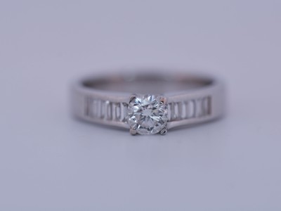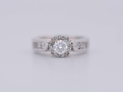 Bague en or blanc avec diamant central 0,65 ct et entourage – env. 1,45 ct au total