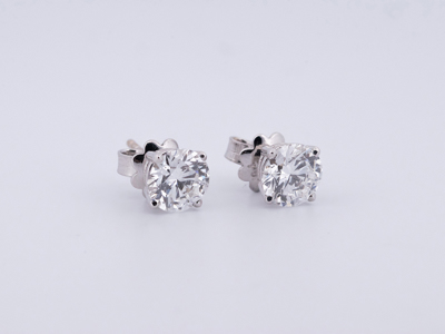 Paire de boucles d’oreilles de qualité-solitaire avec 2 brillants au total: +- 2.20cts. entouré de 42 brillants