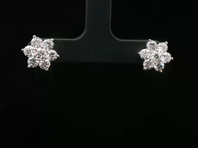 Paar sublieme oorbellen bezet met 14 witte diamanten briljant geslepen, totaal: +-2.40ct