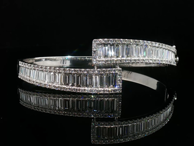 Modieuze armband bezet met 149 witte diamanten, baguette en briljant geslepen, totaal: +-7.20ct