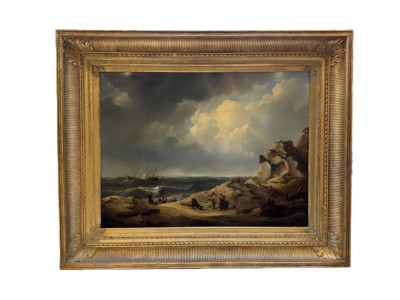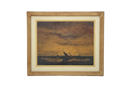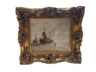 Schilderij olie op paneel, Hollandse school 19e eeuw, niet getekend. 'Strandzicht'