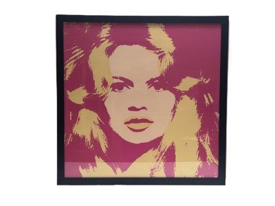 Kleur-zeefdruk naar A. Warholl voorstellende Brigitte-Bardot.