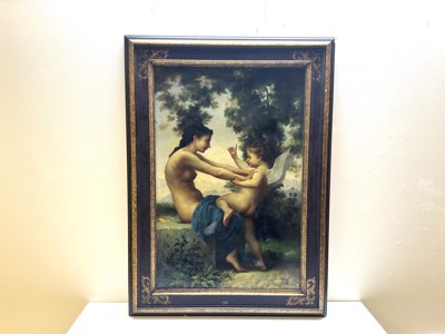 Schilderij olie op doek 19e eeuw, onleesbaar getekend. 'Romantisch tafereel'