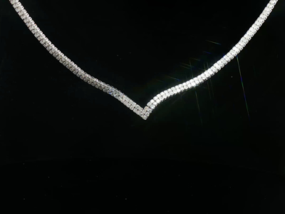 Mooie halsketting met dubbele rij: +-420 witte diamanten briljant geslepen, totaal: +-8.00ct