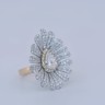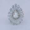 De centrale steen wordt omringd door een pavé van ongeveer 200 briljantgeslepen diamanten, samen goed voor circa 2 karaat, eveneens van kleur I en zuiverheid VS.