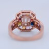 Rondom fonkelen saffieren, citrines en robijnen, samen goed voor ongeveer 1 karaat, die het juweel een levendige en kleurrijke uitstraling geven.