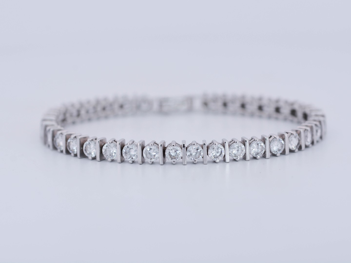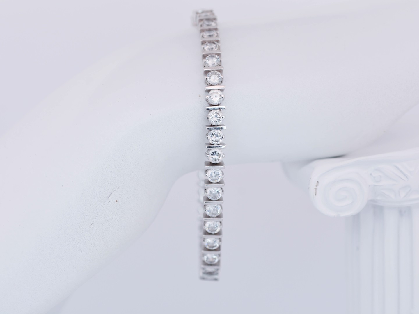 Elegant en verfijnd, deze klassieke Rivière-armband is bezet met 34 briljantgeslepen diamanten met een totaalgewicht van circa 10,20 karaat.